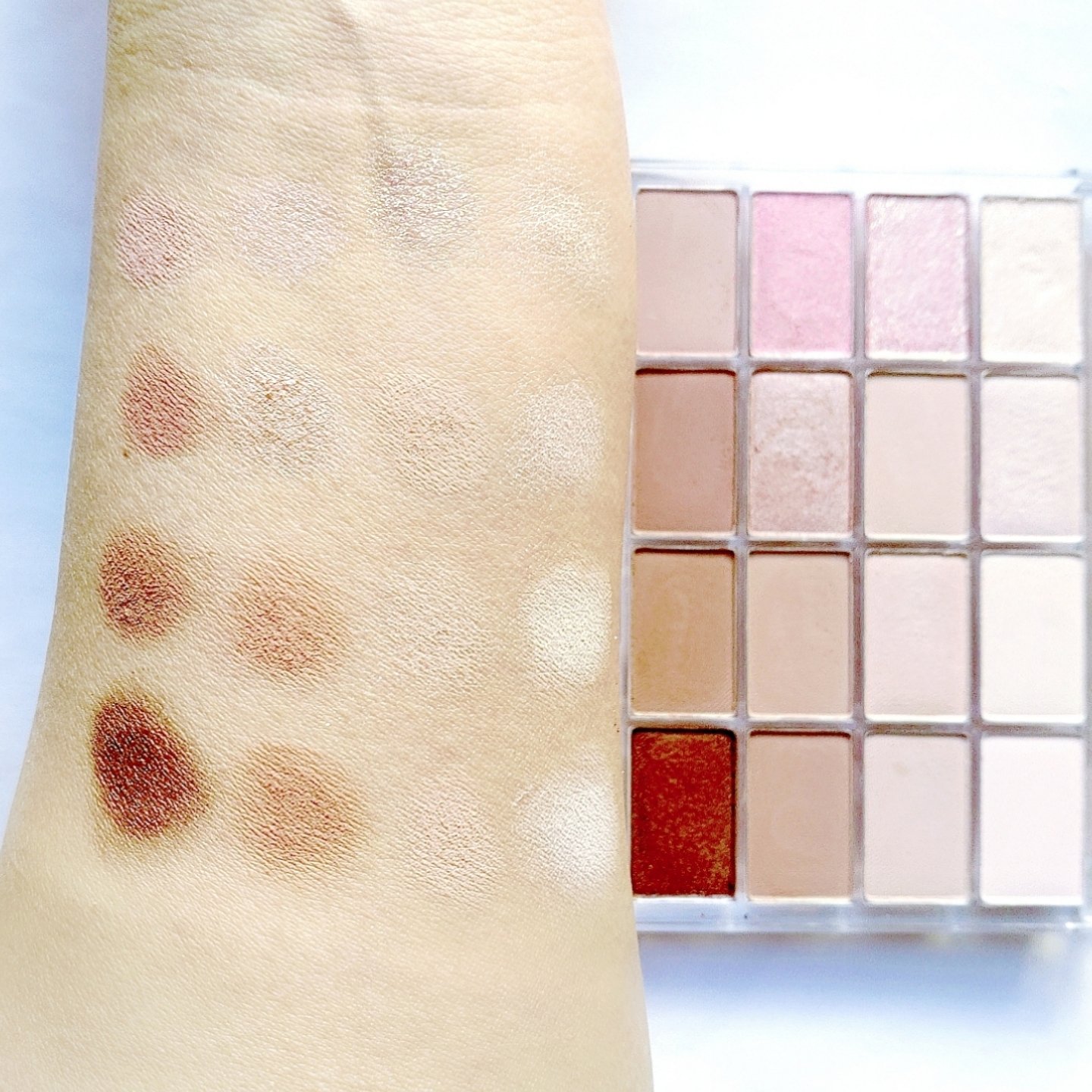 プチプラのクオリティじゃないっ!! 発売前からチェックしていたけれど、ここまで可愛いとは…😆 絶妙カラーで目もとのくすみを飛ばして*明るい印象に🩷 横割りグラデーションでメイクし、立体感をより出したかったので最後に1番左のカラーを上まぶたの真ん中と涙袋にのせています🙆 肌馴染みも良くて粉飛びも感じにくかったです💕 ブラウンの方も店頭に出てたら買おうかな💓