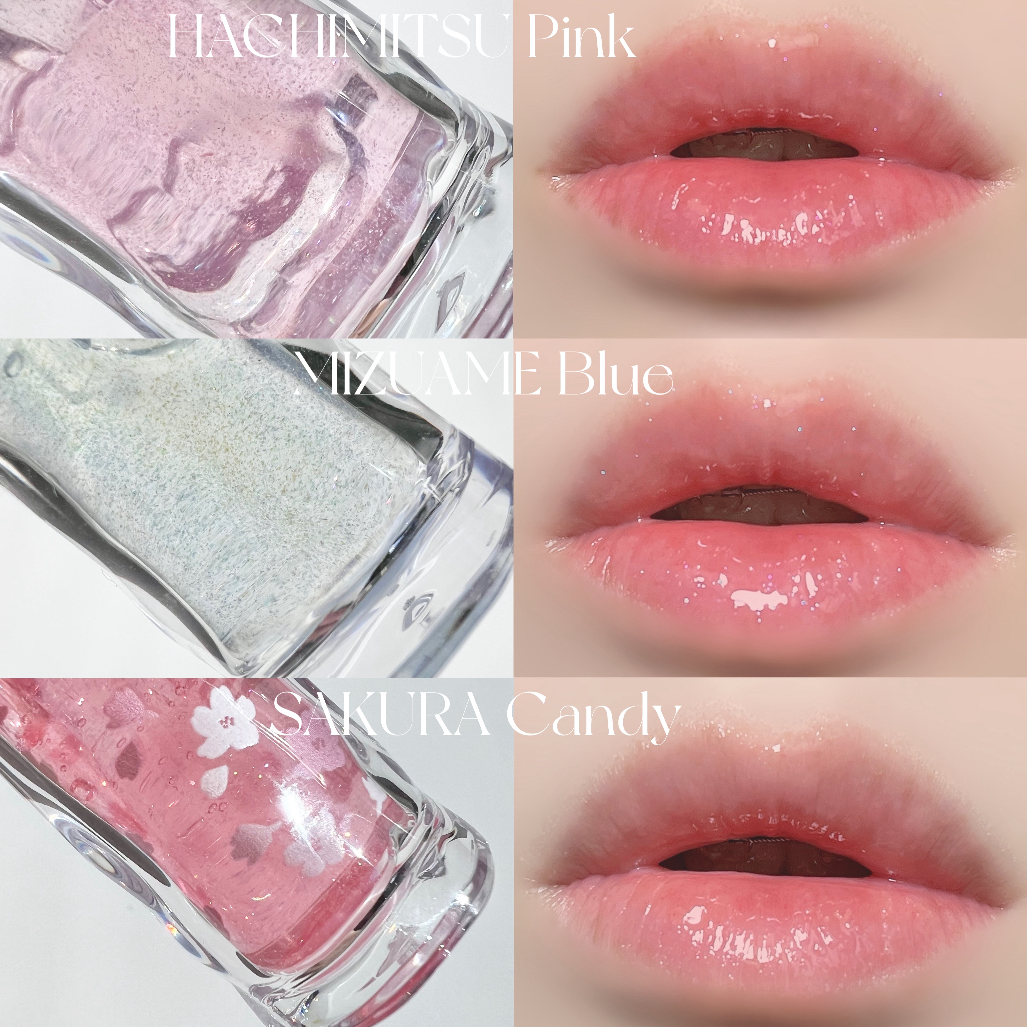 - <01 はちみつピンク> 水添ポリイソブテン、リンゴ酸ジイソステアリル、オクチルドデカノール、トリ(カプリル酸/カプリン酸)グリセリル、リンゴ酸ジイソステアリル、ヒドロキシステアリン酸エチルヘキシル、ジメチルシリル化シリカ、メントキシプロパンジオール、1,2-ヘキサンジオール、パルミチン酸デキストリン、ジブチルラウロイルグルタミド、ジブチルエチルヘキサノイルグルタミド、バニリルブチル、香料、ホウケイ酸(Ca/Al)、酸化チタン、酸化スズ、リンゴ酸ジイソステアリル、青1、赤202、アルガニアスピノサ核油、オリーブ果実油、ヒマシ油、オリーブ油脂肪酸ソルビタン、ヒアルロン酸Na、カプロン酸 <02 みずあめブルー> 水添ポリイソブテン、リンゴ酸ジイソステアリル、オクチルドデカノール、トリ(カプリル酸/カプリン酸)グリセリル、リンゴ酸ジイソステアリル、ヒドロキシステアリン酸エチルヘキシル、ジメチルシリル化シリカ、メントキシプロパンジオール、1,2-ヘキサンジオール、パルミチン酸デキストリン、ジブチルラウロイルグルタミド、ジブチルエチルヘキサノイルグルタミド、香料、バニリルブチル、ホウケイ酸(Ca/Al)、酸化チタン、酸化スズ、リンゴ酸ジイソステアリル、青1、アルガニアスピノサ核油、オリーブ果実油、ヒマシ油、オリーブ油脂肪酸ソルビタン、ヒアルロン酸Na、カプロン酸