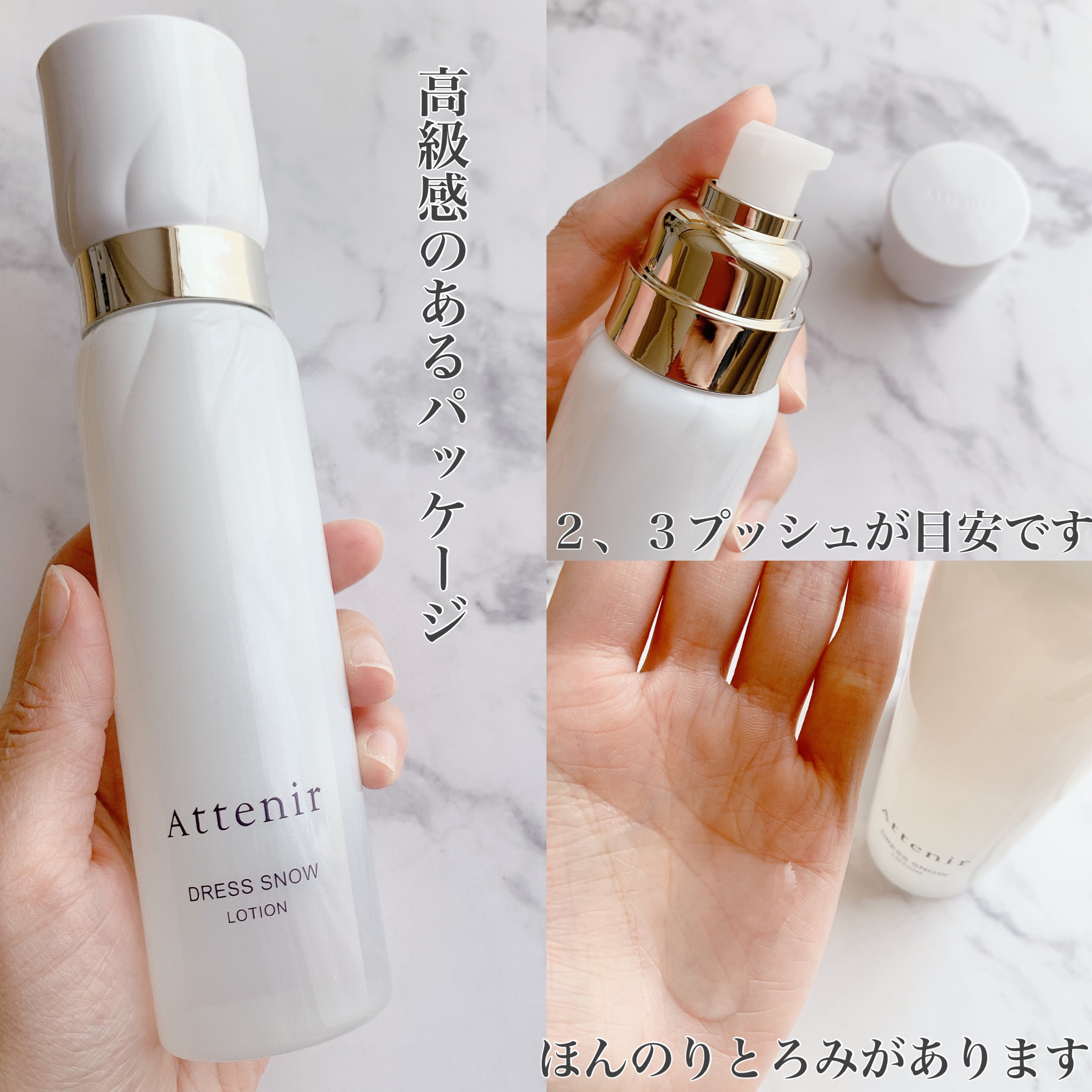 #PR#アテニア@attenir_official🌟アテニア商品名:アテニア ドレススノーローション【医薬部外品】販売名:アテニアローションDSn洗顔後、2~3プッシュ分を肌になじませて使用します。美白※1もエイジングケア※2も気になる方にお...