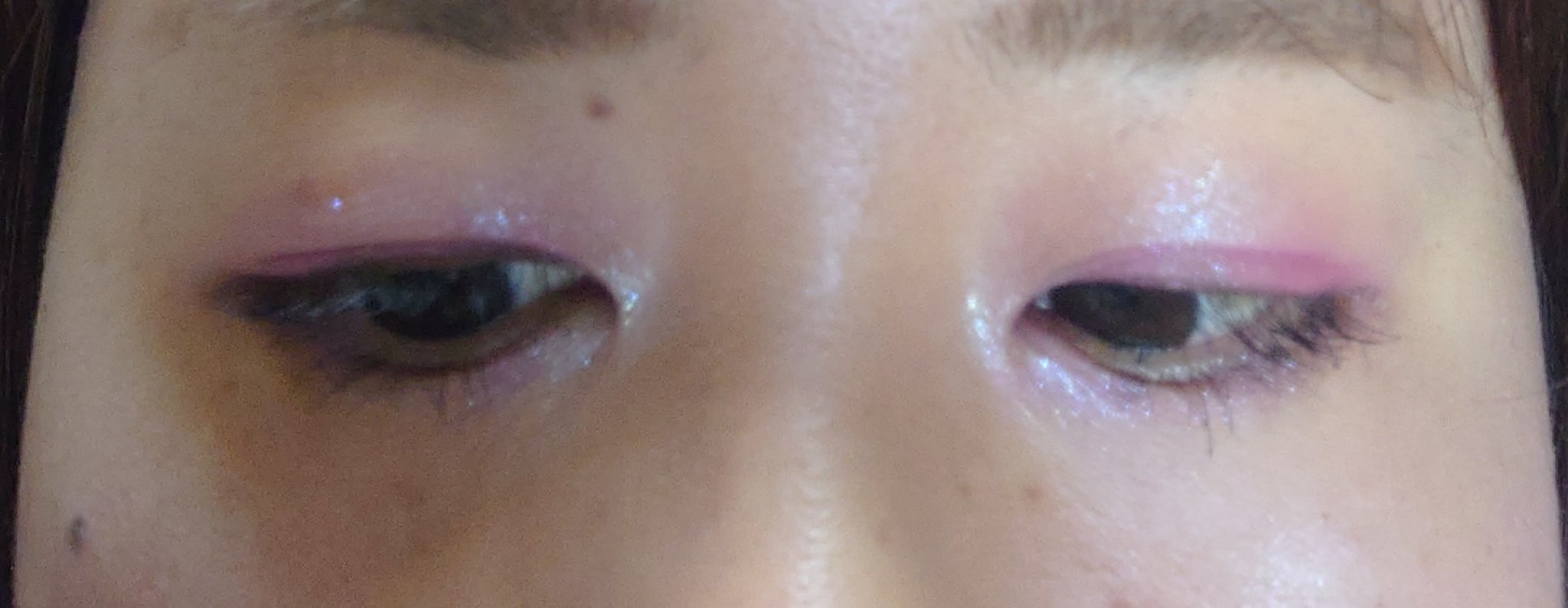 下段真ん中を乗せて下段右を広めに乗せたらいつもと違う雰囲気になりました。 くすみが得意な方は広めに乗せると素敵だと思います! 私はくすみすぎたかな?と上段左のラメを広めに乗せたらキラキラしすぎました😂