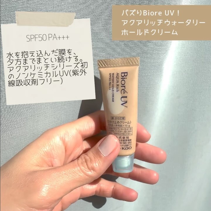 ◯ビオレUVアクアリッチウォーターホールドクリーム50g顔・からだ用SPF50/PA+++アクアリッチシリーズ初のノンケミカル処方(紫外線吸収剤フリー)の日焼け止めが新登場🧴✨もちっとうるおいのあるクリームタイプ✨軽いつけ心地で顔にも体にも使...