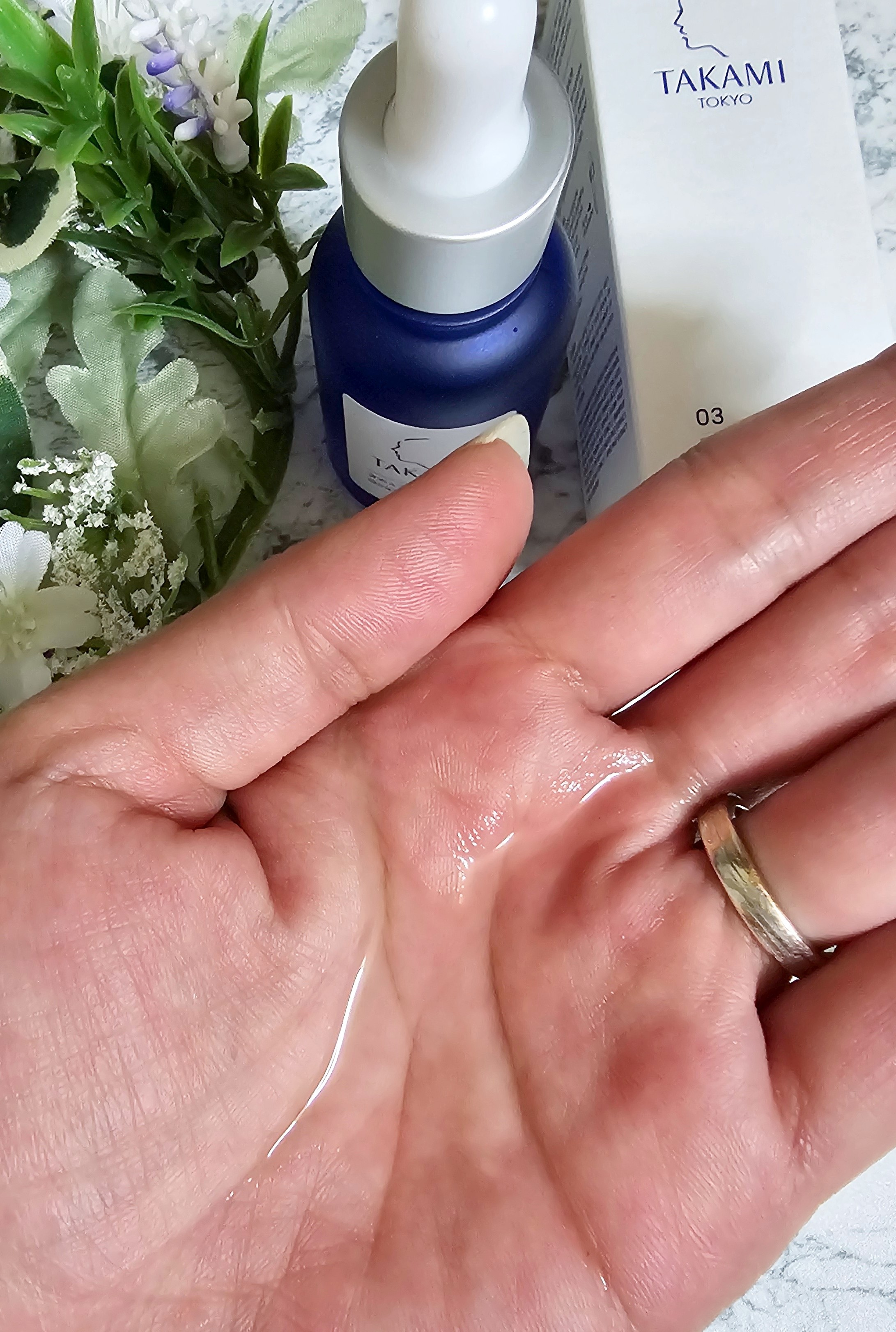 タカミスキンピールは、深い深い青色の瓶に入っての発売です このお色凄く美しいですね すぐに商品名が思い浮かぶ色合いとデザインです リーフレットや公式サイトに詳しく書いているのですが 使い方があります より効率よくケアできるように、必ず使用方法に従ってお使いください スポイトに目安量のラインが入っています ですので、その目安量はしっかり使用して下さいね