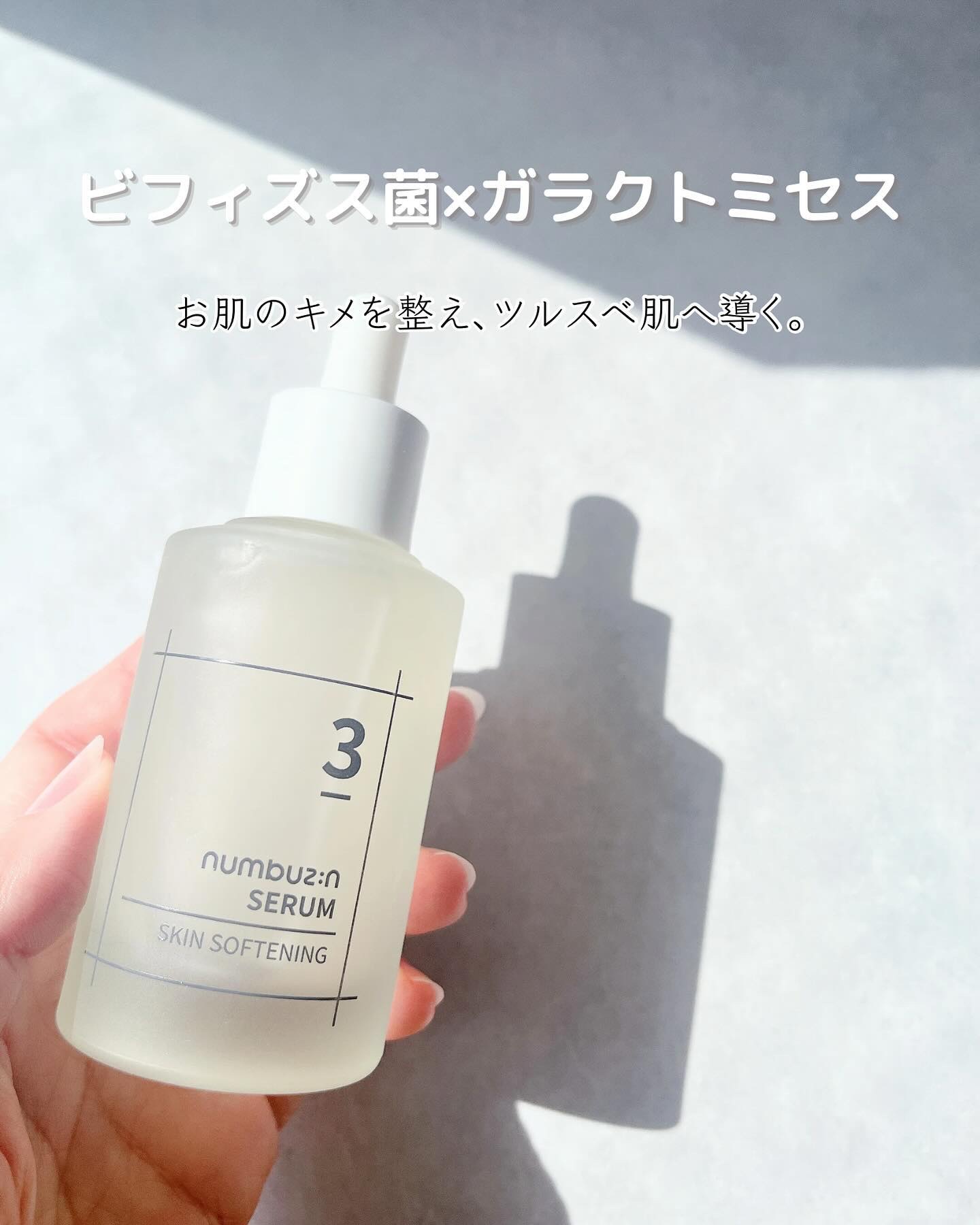 numbuzin🤍3番すべすべキメケアセラム¥2,981【商品の特徴】毛穴ケア特化のナンバーズイン3番の美容液🌸ビフィズス菌×ガラクトミセスがデコボコした毛穴の坂を整えてなめらかな肌キメに導いてくれるとのこと✔️【テクスチャ】3枚目の通り、と...