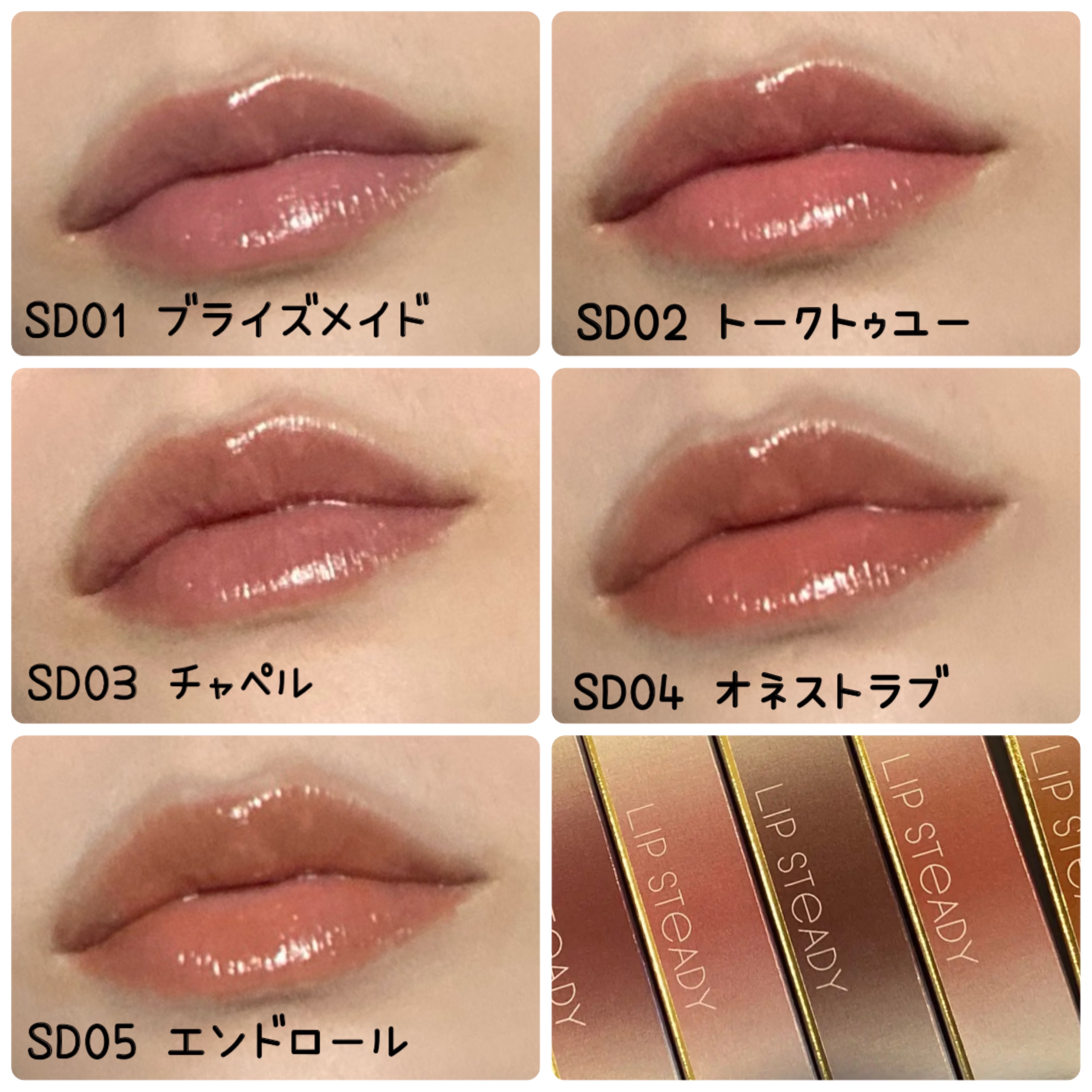 - <SD01 ブライズメイド> 水添ポリイソブテン、トリエチルヘキサノイン、ダイマージリノール酸ジ(イソステアリル/フィトステリル)、デカイソステアリン酸ポリグリセリル-10、トリメチルペンタフェニルトリシロキサン、合成ワックス、リンゴ酸ジイソステアリル、ジフェニルシロキシフェニルトリメチコン、ワセリン、トリメチルシロキシフェニルジメチコン、マイクロクリスタリンワックス、バニリルブチル、メントキシプロパンジオール、ヒアルロン酸クロスポリマーNa、加水分解コラーゲン、ホホバ種子油、オリーブ果実油、ブドウ種子油、マカデミア種子油、アボカド油、アルガニアスピノサ核油、カニナバラ果実油、アーモンド油、アンズ核油、メドウフォーム種子油、(ジイソステアリン酸/ポリヒドロキシステアリン酸/セバシン酸)ポリグリセリル-4、イソステアリン酸Na、カルナウバロウ、キャンデリラロウエステルズ、ステアリン酸エチルヘキシル、セスキイソステアリン酸ソルビタン、トコフェロール、ハイドロゲンジメチコン、ホウケイ酸(Ca/Al)、水、(+/-)シリカ、ラウロイルリシン、黄4、黄5、酸化チタン、酸化鉄、水酸化Al、青1、赤201、赤202 <SD02 トークトゥユー > 水添ポリイソブテン、トリエチルヘキサノイン、ダイマージリノール酸ジ(イソステアリル/フィトステリル)、デカイソステアリン酸ポリグリセリル-10、トリメチルペンタフェニルトリシロキサン、合成ワックス、リンゴ酸ジイソステアリル、ジフェニルシロキシフェニルトリメチコン、ワセリン、トリメチルシロキシフェニルジメチコン、マイクロクリスタリンワックス、バニリルブチル、メントキシプロパンジオール、ヒアルロン酸クロスポリマーNa、加水分解コラーゲン、ホホバ種子油、オリーブ果実油、ブドウ種子油、マカデミア種子油、アボカド油、アルガニアスピノサ核油、カニナバラ果実油、アーモンド油、アンズ核油、メドウフォーム種子油、(ジイソステアリン酸/ポリヒドロキシステアリン酸/セバシン酸)ポリグリセリル-4、イソステアリン酸Na、カルナウバロウ、キャンデリラロウエステルズ、ステアリン酸エチルヘキシル、セスキイソステアリン酸ソルビタン、トコフェロール、ハイドロゲンジメチコン、ホウケイ酸(Ca/Al)、水、(+/-)シリカ、ラウロイルリシン、黄4、黄5、酸化チタン、酸化鉄、水酸化Al、青1、赤201、赤202 <SD03 チャペル> 水添ポリイソブテン、トリエチルヘキサノイン、ダイマージリノール酸ジ(イソステアリル/フィトステリル)、デカイソステアリン酸ポリグリセリル-10、トリメチルペンタフェニルトリシロキサン、合成ワックス、リンゴ酸ジイソステアリル、ジフェニルシロキシフェニルトリメチコン、ワセリン、トリメチルシロキシフェニルジメチコン、マイクロクリスタリンワックス、バニリルブチル、メントキシプロパンジオール、ヒアルロン酸クロスポリマーNa、加水分解コラーゲン、ホホバ種子油、オリーブ果実油、ブドウ種子油、マカデミア種子油、アボカド油、アルガニアスピノサ核油、カニナバラ果実油、アーモンド油、アンズ核油、メドウフォーム種子油、(ジイソステアリン酸/ポリヒドロキシステアリン酸/セバシン酸)ポリグリセリル-4、イソステアリン酸Na、カルナウバロウ、キャンデリラロウエステルズ、ステアリン酸エチルヘキシル、セスキイソステアリン酸ソルビタン、トコフェロール、ハイドロゲンジメチコン、ホウケイ酸(Ca/Al)、水、(+/-)シリカ、ラウロイルリシン、黄4、黄5、酸化チタン、酸化鉄、水酸化Al、青1、赤201、赤202 <SD04 オネストラブ> 水添ポリイソブテン、トリエチルヘキサノイン、ダイマージリノール酸ジ(イソステアリル/フィトステリル)、デカイソステアリン酸ポリグリセリル-10、トリメチルペンタフェニルトリシロキサン、合成ワックス、リンゴ酸ジイソステアリル、ジフェニルシロキシフェニルトリメチコン、ワセリン、トリメチルシロキシフェニルジメチコン、マイクロクリスタリンワックス、バニリルブチル、メントキシプロパンジオール、ヒアルロン酸クロスポリマーNa、加水分解コラーゲン、ホホバ種子油、オリーブ果実油、ブドウ種子油、マカデミア種子油、アボカド油、アルガニアスピノサ核油、カニナバラ果実油、アーモンド油、アンズ核油、メドウフォーム種子油、(ジイソステアリン酸/ポリヒドロキシステアリン酸/セバシン酸)ポリグリセリル-4、イソステアリン酸Na、カルナウバロウ、キャンデリラロウエステルズ、ステアリン酸エチルヘキシル、セスキイソステアリン酸ソルビタン、トコフェロール、ハイドロゲンジメチコン、ホウケイ酸(Ca/Al)、水、(+/-)シリカ、ラウロイルリシン、黄4、黄5、酸化チタン、酸化鉄、水酸化Al、青1、赤201、赤202 <SD05 エンドロール> 水添ポリイソブテン、トリエチルヘキサノイン、ダイマージリノール酸ジ(イソステアリル/フィトステリル)、デカイソステアリン酸ポリグリセリル-10、トリメチルペンタフェニルトリシロキサ