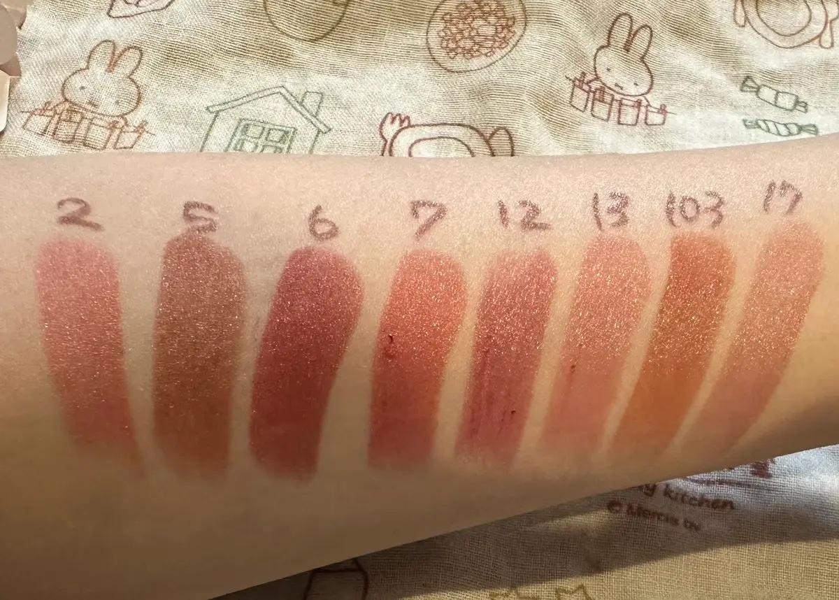 ◎カネボウ ルージュスターヴァイブラント V07InmostDesire会社の子が買ってて私もと一緒に購入。1番気になってた07のブラウンリップ🤎❤️私が使った感じはレッドブラウンですごく馴染むし、かわいい🥰サンプルの02と比較とリプモンの色...