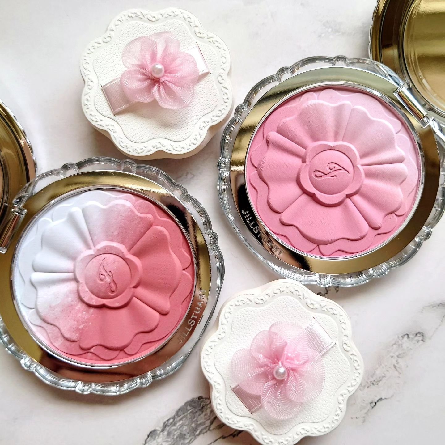 花びらをイメージしたグラデーションのチークが美しすぎる😍 限定色の「101 bluerose wish」は儚げなローズがふんわり血色感を出してくれるよ パフで横にスライドするように取って滑らすとふわっと透明感のあるグラデーションに🩷