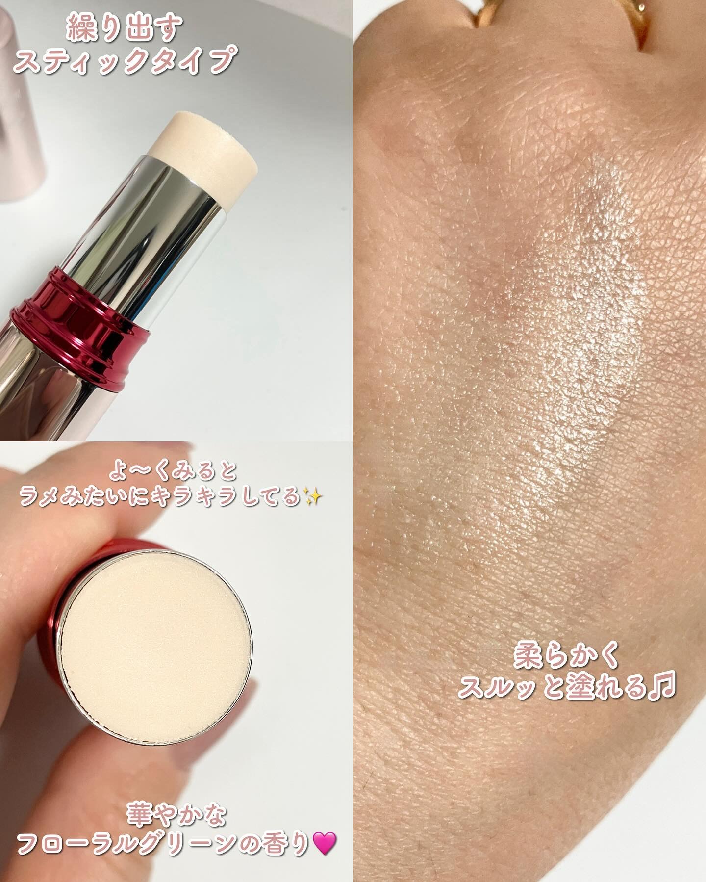 相変わらずオシャレなパケ❤️ このカラーがとてもキュート🥰 むっちり、と肌に密着しながらも伸びが良いです。 ぷるんとした質感❤️ 唇に塗ると、ほんのりスースー感。 香りはほぼないかな? カサついた私の薄い唇もふっくらナチュラルにプルンと ❤️ 透けるので、オーバーリップにする場合は重ね塗りでたっぷりした方が良さそう。 しっとりして👌 グロスのむちむち感はありますが、私には不快なベタベタ感ではなかったです。 また、ティッシュオフすると色は落ちちゃいますが、しっとり感は残ります❤️ 縦じわが目立ちにくくて良いです❤️ 他のリップと重ねるのも楽しみ🥰 1本持っておくと重宝しそうです☺️💕