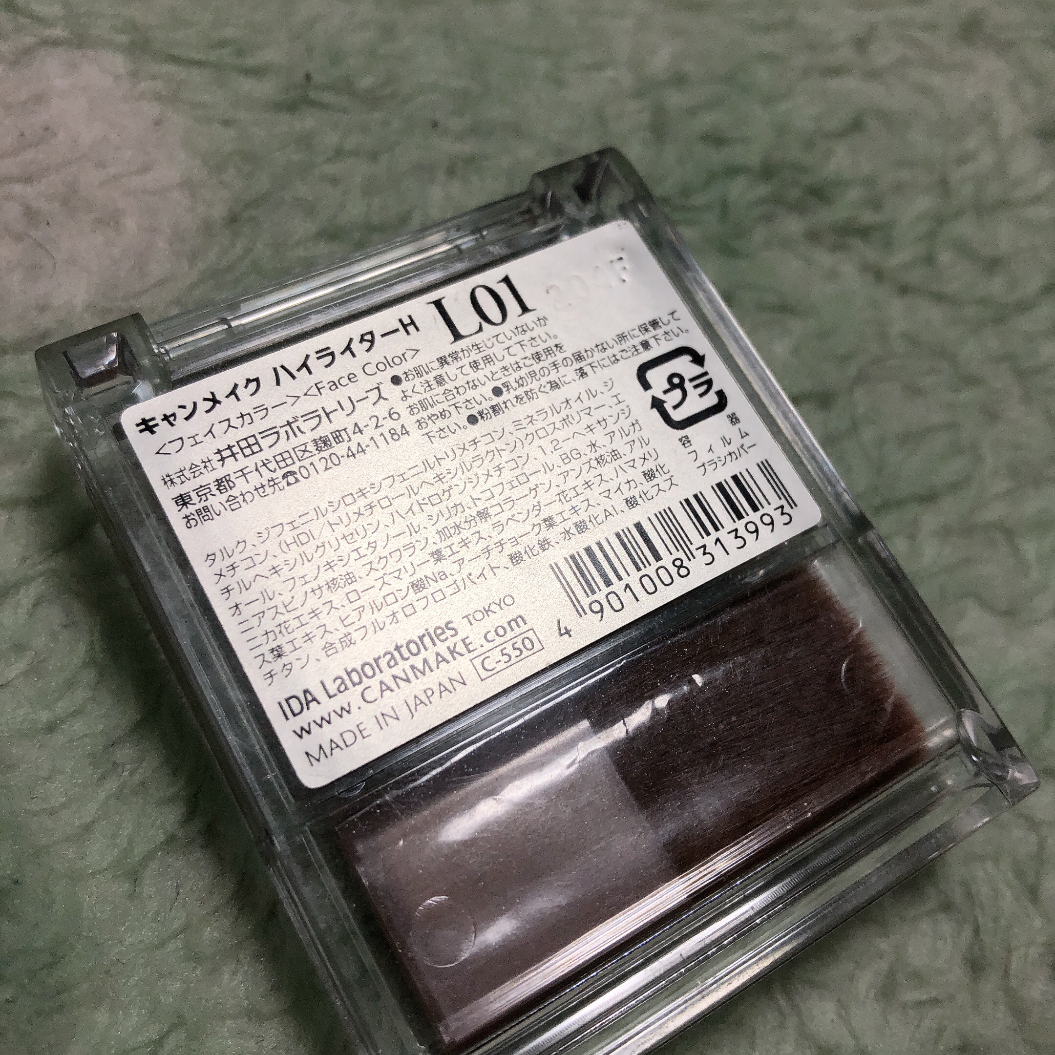 - <L01 シャンパンゴールド> タルク、ジフェニルシロキシフェニルトリメチコン、ミネラルオイル、ジメチコン、(HDI/トリメチロールヘキシルラクトン)クロスポリマー、エチルヘキシルグリセリン、ハイドロゲンジメチコン、1,2-ヘキサンジオール、フェノキシエタノール、シリカ、トコフェロール、BG、水、アルガニアスピノサ核油、スクワラン、加水分解コラーゲン、アンズ核油、アルニカ花エキス、ローズマリー葉エキス、ラベンダー花エキス、ハマメリス葉エキス、ヒアルロン酸Na、アーチチョーク葉エキス、マイカ、酸化チタン、合成フルオロフロゴパイト、酸化鉄、水酸化Al、酸化スズ <N01 シルキーベージュ> タルク、ジフェニルシロキシフェニルトリメチコン、ジメチコン、ミネラルオイル、ワセリン、(HDI/トリメチロールヘキシルラクトン)クロスポリマー、エチルヘキシルグリセリン、ハイドロゲンジメチコン、1,2-ヘキサンジオール、フェノキシエタノール、シリカ、トコフェロール、BG、水、アルガニアスピノサ核油、スクワラン、加水分解コラーゲン、アンズ核油、アルニカ花エキス、ローズマリー葉エキス、ラベンダー花エキス、ハマメリス葉エキス、ヒアルロン酸Na、アーチチョーク葉エキス、マイカ、酸化チタン、合成フルオロフロゴパイト、酸化鉄、酸化スズ、水酸化Al