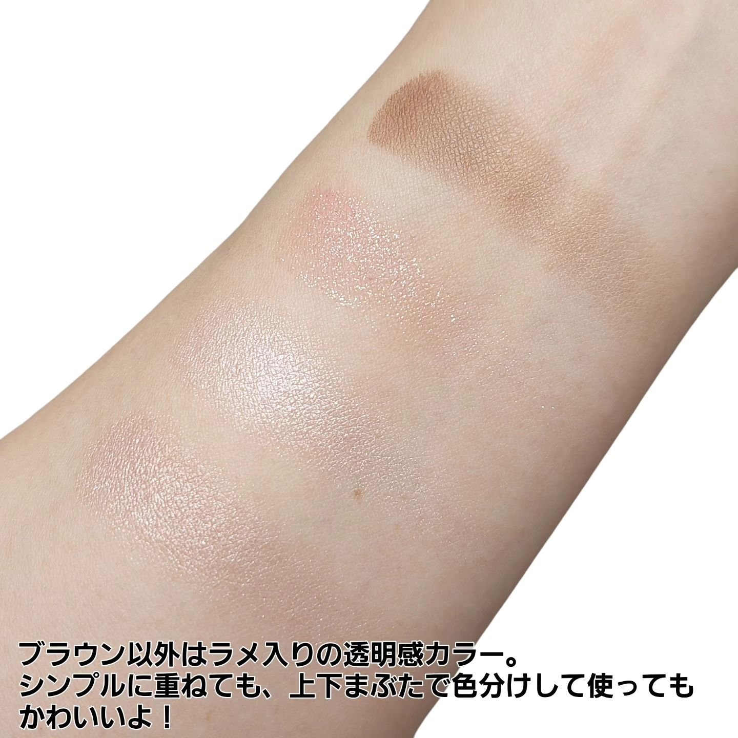 この、513フラワーガーデンは、意外にもどイエベの私でも目元に透明感が出て、浮かず顔色悪くならず、めちゃめちゃ可愛かった。。!!😭 ブルベ向けっぽいけどイエベにも是非是非おすすめ!個人的にはイエベ向けっぽいウォルナットベージュよりもこっちのがおすすめ!! フラワーガーデンほんとめちゃめちゃ可愛いので、ブルベカラーかとおもって避けてるイエベがいるなら使ってみてほしい。