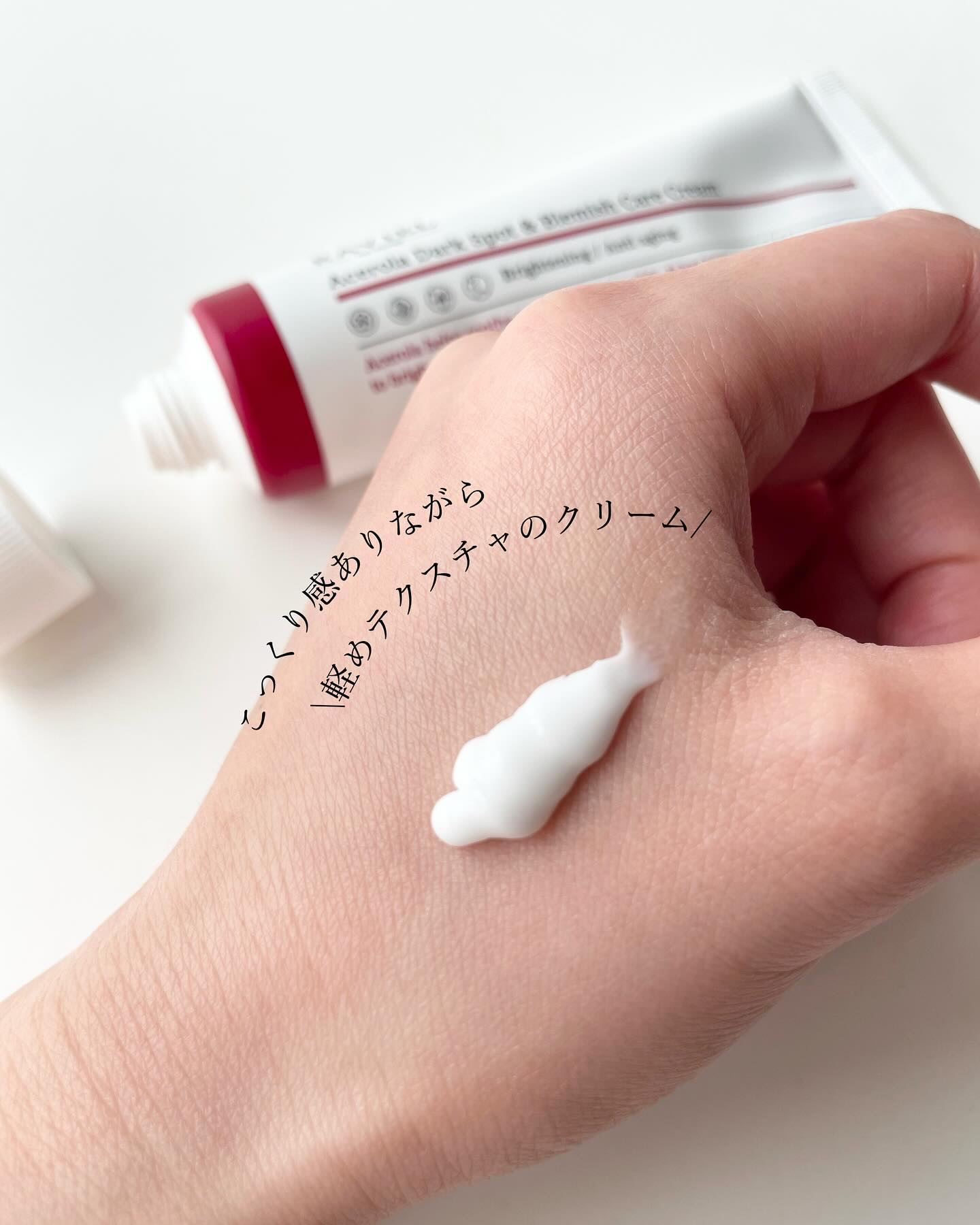 - 長い研究の末に作られたくすみ*1ケアクリームで、独自整肌成分「アセロラ」抽出物を配合。 肌を整えるパンテノール*2、ドクダミエキス*2を含有しており、気になる部分を集中ケア。肌に潤いをあたえて、くすみ*1をケアし、肌荒れを防いで透明感のある肌に導きます。肌低刺激テスト*3臨床試験を完了済み。 敏感な肌にも使え、低刺激な使い心地のクリームで、デイリーケア製品として使用可能。 *1乾燥による *2保湿成分 *3すべての方に皮膚刺激が発生しないということではありません