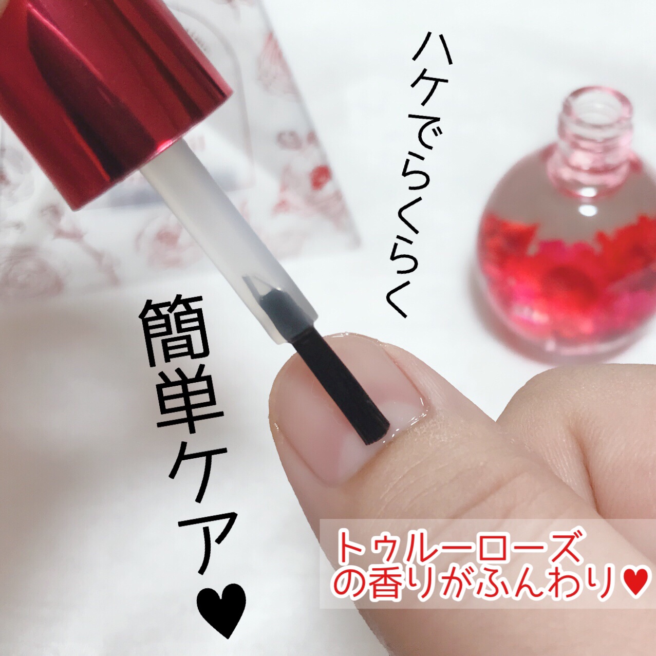 - 4種のうるおい成分*配合で、爪や甘皮にうるおいを与えてくれるボトルタイプのネイルオイル。鮮やかなローズカラーを基調としたパッケージが気分を盛り上げてくれます。 ふんわり香ってくれるので、お出かけ前やおやすみ前のケアにもオススメ♪ *保湿成分:コラーゲン、ヒアルロン酸Na、ホホバ種子油、スクワラン
