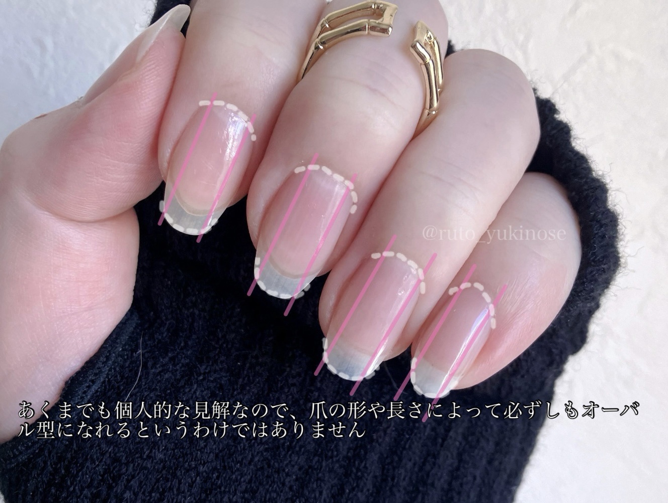 私的オーバル型爪の整え方✨✼••┈┈••✼••┈┈••✼••┈┈••✼••┈┈••✼①長さを整える為に爪先を平に削る②爪の根本と爪先の幅をなるべく揃えるように、爪のピンクの部分ギリギリのところと①で削った爪先へ斜めに削る※斜めに角度を入れ過ぎ...