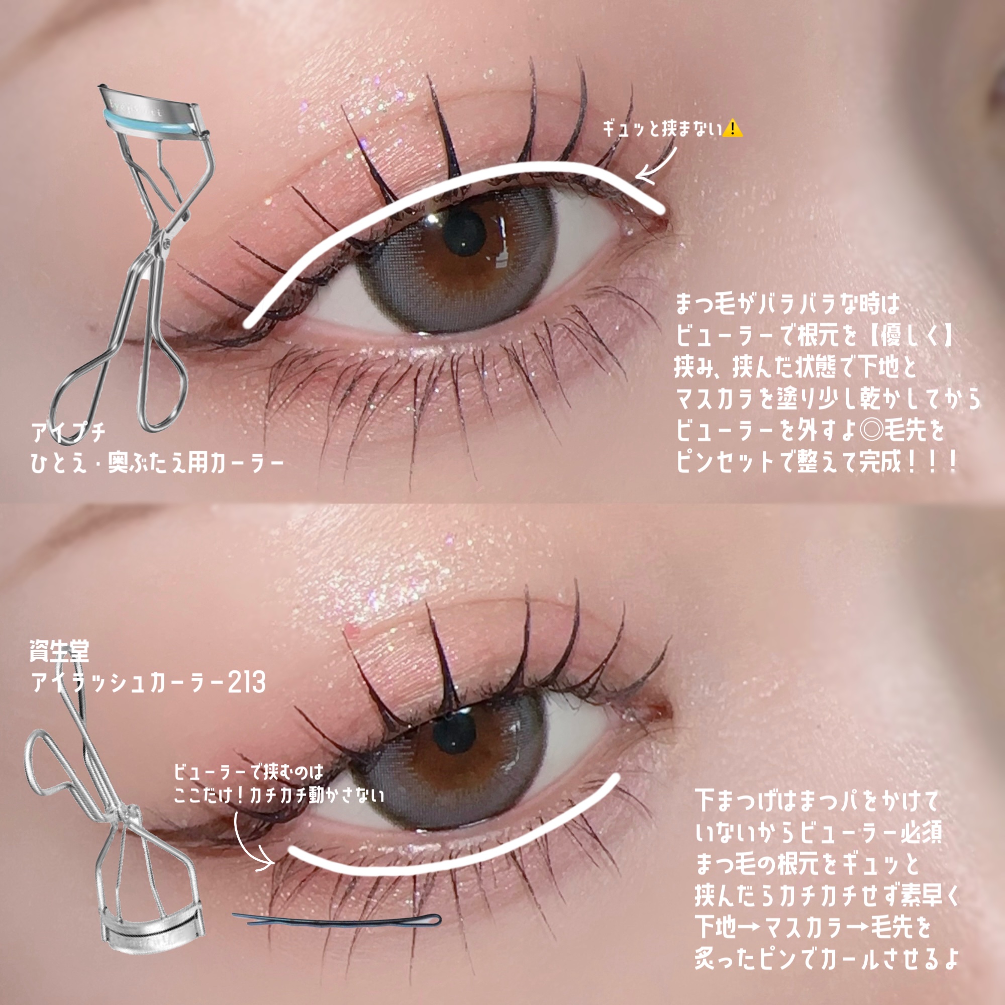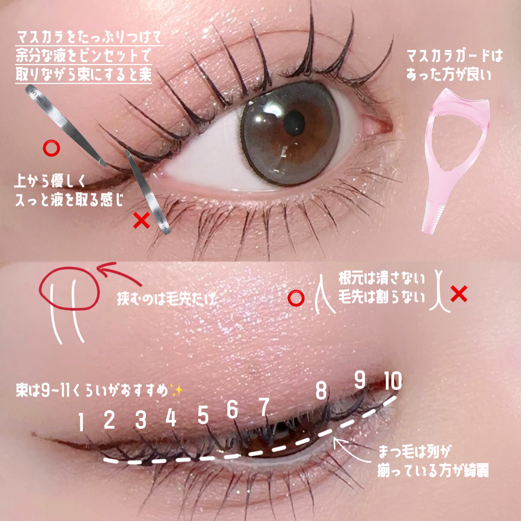 よく聞かれる事を全てまとめました👀💕まつ毛メイクの最新版も❣️下まつげのポイントはビューラーを何度もカチカチしない事💡ピンセットを使う時は根元はあまり触らないように毛先は割れないようにしてます👀詳しくは画像を見てね⭐️#LIPS投稿アワードメ...