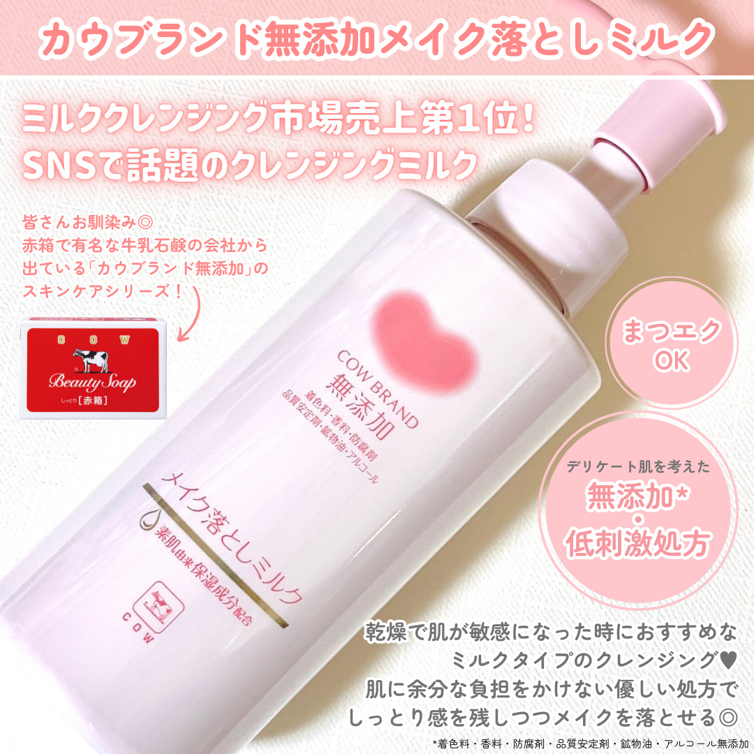 \ミルククレンジングの王様👑/赤箱で有名な牛乳石鹸の会社から出ている「カウブランド無添加」のスキンケアシリーズ。カウブランド無添加メイク落としミルク@mutenka_officialSNSでよく見かけすぎる、ミルククレンジング!ミルククレンジ...