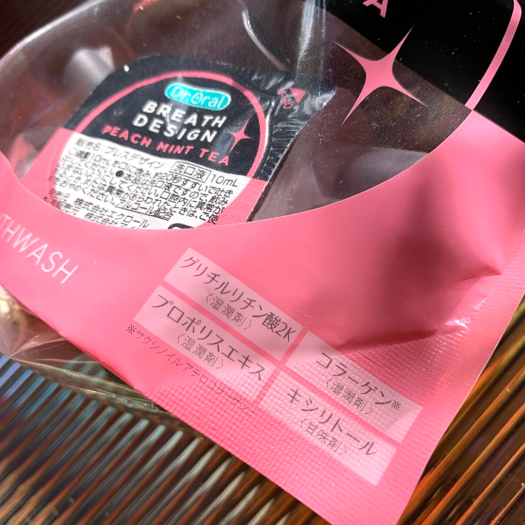 Dr.Oralのドクターオーラルブレスデザインを使用しました😊息をデザインする新感覚マウスウォッシュになっております✨20秒の簡単ケア。口をすすいで吐き出すだけで、お口まるごと洗浄!?口中の汚れを固めてオフ。"汚れが見えるマウスウォッシュ"で...