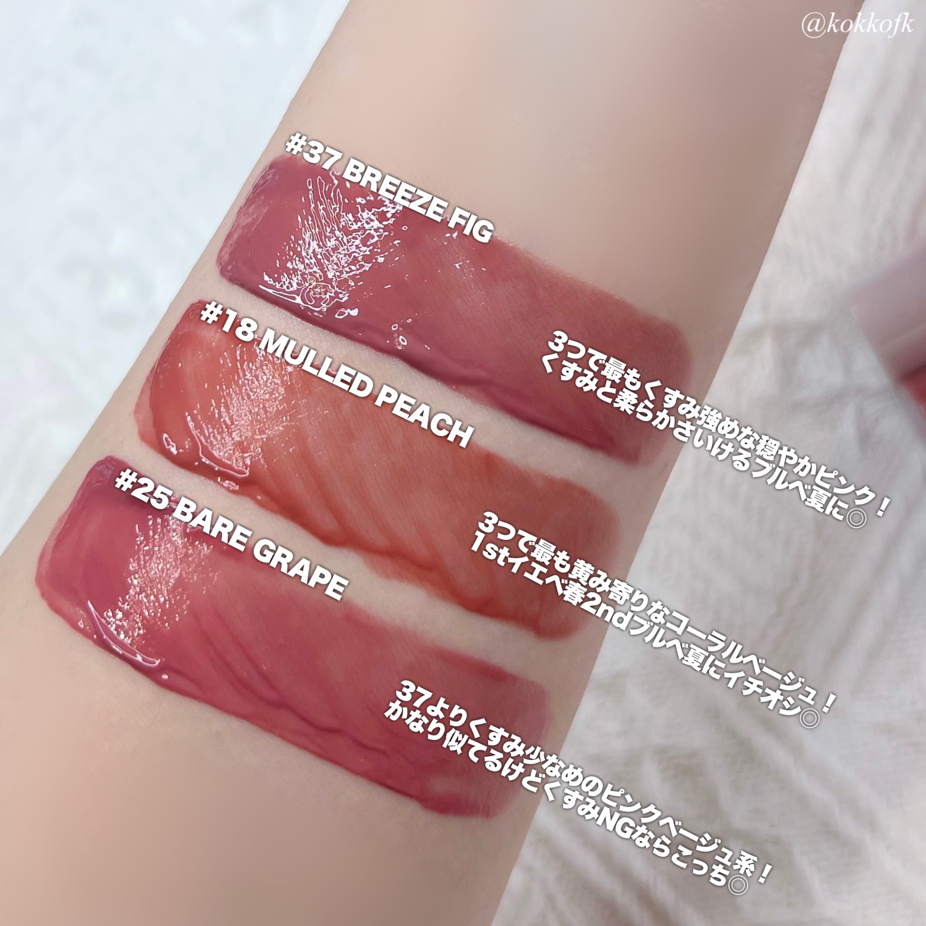 - <06 フィグフィグ(FIGFIG)> 水、オクチルドデカノール、ジメチコン、変性アルコール、アクリレーツコポリマー、ステアリン酸ソルビタン、エチルセルロース、ベヘニルアルコール、ペンチレングリコール、キウイエキス、パパイア果実エキス、グレープフルーツ果実エキス、ココヤシ果実エキス、マンゴー果実エキス、グアバ果実エキス、ポリソルベート60、シリカ、(アクリル酸Na/アクリロイルジメチルタウリンNa)コポリマー、リンゴ酸ジイソステアリル、トリイソステアリン酸ポリグリセリル-2、イソヘキサデカン、ポリソルベート80、ジイソステアリン酸ポリグリセリル-2、オレイン酸ソルビタン、エチルヘキシルグリセリン、BG、EDTA-2Na、フェノキシエタノール、香料、酸化チタン、酸化鉄、赤202、赤227、黄5、赤102、青1 <07 ジュジュブ(JUJUBE)> 水、オクチルドデカノール、ジメチコン、変性アルコール、アクリレーツコポリマー、ステアリン酸ソルビタン、エチルセルロース、ベヘニルアルコール、ペンチレングリコール、キウイエキス、パパイア果実エキス、グレープフルーツ果実エキス、ココヤシ果実エキス、マンゴー果実エキス、グアバ果実エキス、ポリソルベート60、シリカ、(アクリル酸Na/アクリロイルジメチルタウリンNa)コポリマー、トリイソステアリン酸ポリグリセリル-2、リンゴ酸ジイソステアリル、イソヘキサデカン、ポリソルベート80、ジイソステアリン酸ポリグリセリル-2、オレイン酸ソルビタン、エチルヘキシルグリセリン、BG、EDTA-2Na、フェノキシエタノール、香料、酸化チタン、酸化鉄、赤202、赤227、黄5、黄4、青1 <08 アップルブラウン(APPLE BROWN)> 水、オクチルドデカノール、ジメチコン、変性アルコール、アクリレーツコポリマー、ステアリン酸ソルビタン、エチルセルロース、ベヘニルアルコール、ペンチレングリコール、キウイエキス、パパイア果実エキス、グレープフルーツ果実エキス、ココヤシ果実エキス、マンゴー果実エキス、グアバ果実エキス、ポリソルベート60、シリカ、(アクリル酸Na/アクリロイルジメチルタウリンNa)コポリマー、トリイソステアリン酸ポリグリセリル-2、イソヘキサデカン、リンゴ酸ジイソステアリル、ポリソルベート80、ジイソステアリン酸ポリグリセリル-2、オレイン酸ソルビタン、エチルヘキシルグリセリン、BG、EDTA-2Na、フェノキシエタノール、香料、酸化鉄、黄5、赤202、酸化チタン、赤227、青1 <11 ピンクパンプキン(PINK PUMPKIN)> 水、オクチルドデカノール、ジメチコン、変性アルコール、アクリレーツコポリマー、ステアリン酸ソルビタン、エチルセルロース、ベヘニルアルコール、ペンチレングリコール、キウイエキス、パパイア果実エキス、グレープフルーツ果実エキス、ココヤシ果実エキス、マンゴー果実エキス、グアバ果実エキス、ポリソルベート60、シリカ、(アクリル酸Na/アクリロイルジメチルタウリンNa)コポリマー、リンゴ酸ジイソステアリル、イソヘキサデカン、トリイソステアリン酸ポリグリセリル-2、ポリソルベート80、ジイソステアリン酸ポリグリセリル-2、オレイン酸ソルビタン、エチルヘキシルグリセリン、BG、EDTA-2Na、フェノキシエタノール、香料、酸化チタン、酸化鉄、赤202、黄4、赤227、黄5、赤104(1) <22 ポメロスキン(POMELO SKIN)> 水、オクチルドデカノール、ジメチコン、変性アルコール、アクリレーツコポリマー、ポリソルベート60、エチルセルロース、ベヘニルアルコール、ペンチレングリコール、(アクリル酸Na/アクリロイルジメチルタウリンNa)コポリマー、シリカ、ステアリン酸ソルビタン、イソヘキサデカン、リンゴ酸ジイソステアリル、フェノキシエタノール、酸化チタン、トリイソステアリン酸ポリグリセリル-2、ポリソルベート80、酸化鉄、香料、オレイン酸ソルビタン、エチレンジアミンジコハク酸3Na、エチルヘキシルグリセリン、赤202、ジイソステアリン酸ポリグリセリル-2、赤227、黄5、青1、BG、キウイエキス、パパイア果実エキス、グレープフルーツ果実エキス、ココヤシ果実、マンゴー果実エキス、グアバ果実エキス <23 ヌカダミア(NUCADAMIA)> 水、オクチルドデカノール、ジメチコン、変性アルコール、アクリレーツコポリマー、ポリソルベート60、エチルセルロース、ベヘニルアルコール、ペンチレングリコール、(アクリル酸Na/アクリロイルジメチルタウリンNa)コポリマー、シリカ、ステアリン酸ソルビタン、イソヘキサデカン、フェノキシエタノール、リンゴ酸ジイソステアリル、酸化チタン、ポリソルベート80、トリイソステアリン酸ポリグリセリル-2、酸化鉄、香料、オレイン酸ソルビタン、エチレンジアミンジコハク酸3Na、赤202、赤227、黄5、ジイソステアリン酸ポリグリセリル-2、エチルヘキシルグリセリン、黄4、青1、BG、キウイエキス、パパイア果実エキス、グレープフルーツ果実エキス、ココヤシ果実、マンゴー果実エキス <24 ピーリングエンドゥ(PEELING ANGDOO)> 水、オクチルドデカノール、ジメチコン、変性アル