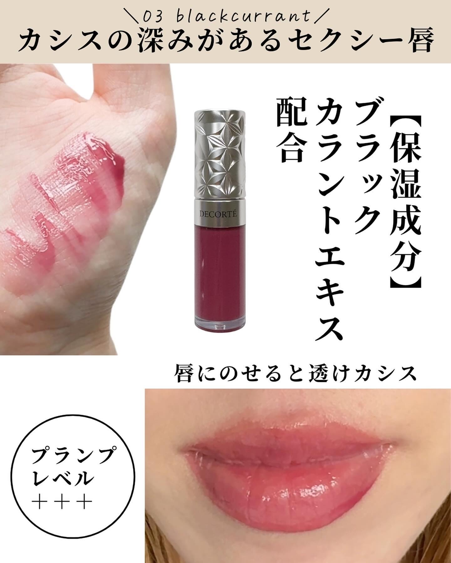 💄DECORTÉデコルテ プランピングリップセラム プランプレベル(+++) *03blackcurrantコスメデコルテの先行乳液から着想を得たエマルジョン効果とオイルの保湿感を1本に融合したリップセラム⚪︎乳液発想の柔軟リップケア⚪︎じん...