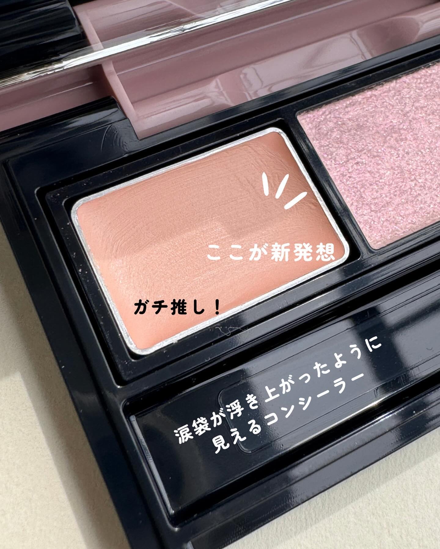 薄い色味の影パウダーで 失敗しにくいし、少しずつの調整ができて使いやすかった! コンシーラーは血色感のあるカラーで、涙袋が絶壁のわたしでも【ぷっくり】してみえる ラメは気分変えて他のメイクにしても使えそう
