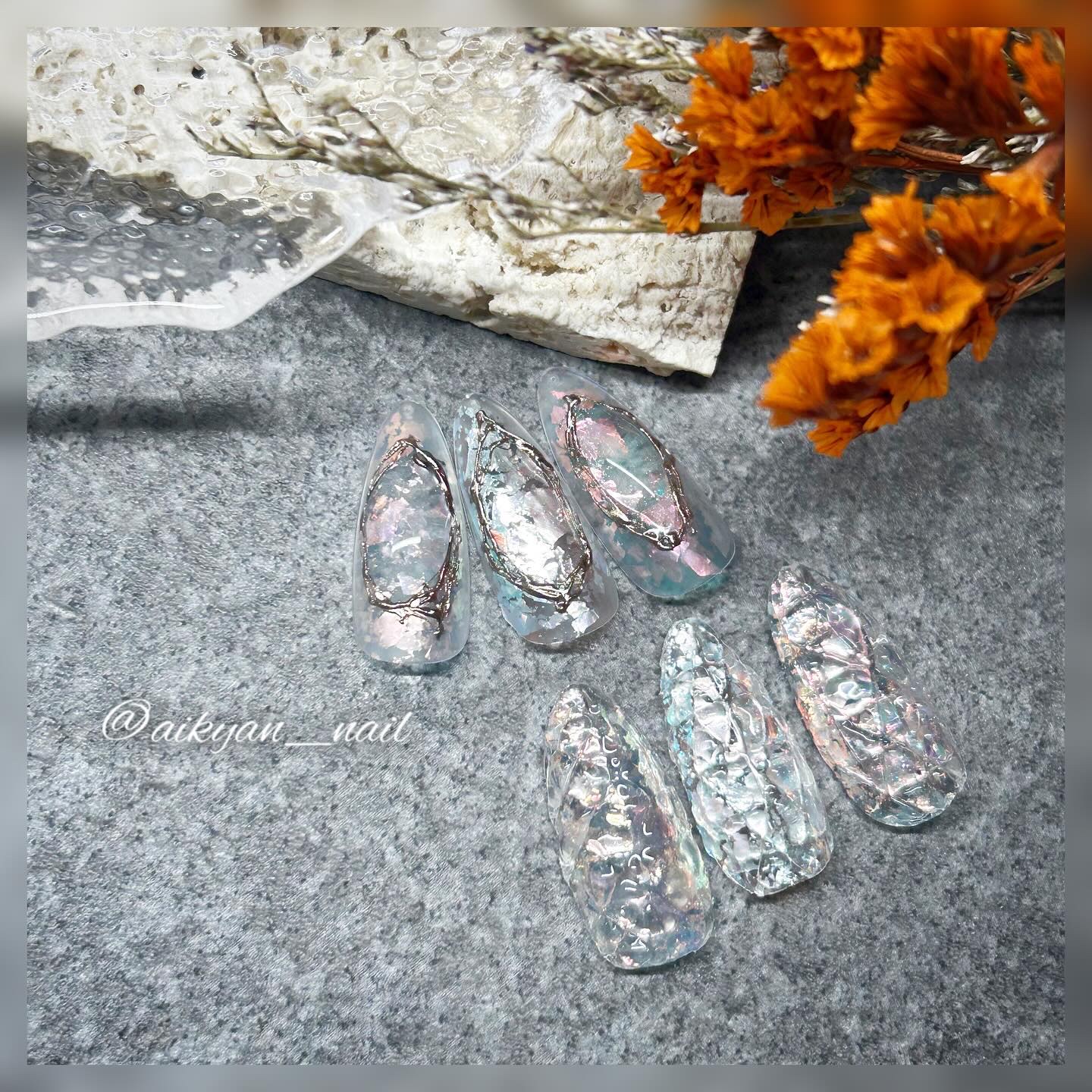 5ミクロンより細かい粒子! 4ミクロンマグネット🧲✨ 粒子の動きも早いし うるうるちゅるんも簡単💕 ①4ミクロンマグを塗布し真ん中を光らせ硬化 もう一度繰り返す ② JELLY GELを乗せ斜めにピンセットで押し スタッズを交差している所に乗せ硬化 溝が無くならないように薄くトップをして硬化\完成/ リボン- ①4ミクロンマグを塗布し、輪になるよう光りを 動かし硬化 パーツを乗せ\完成/ フレンチ- ①夏03を一度塗り 4ミクロンマグをフレンチに乗せフレンチのカーブに沿って 光らせ硬化 パーツを乗せ\完成/