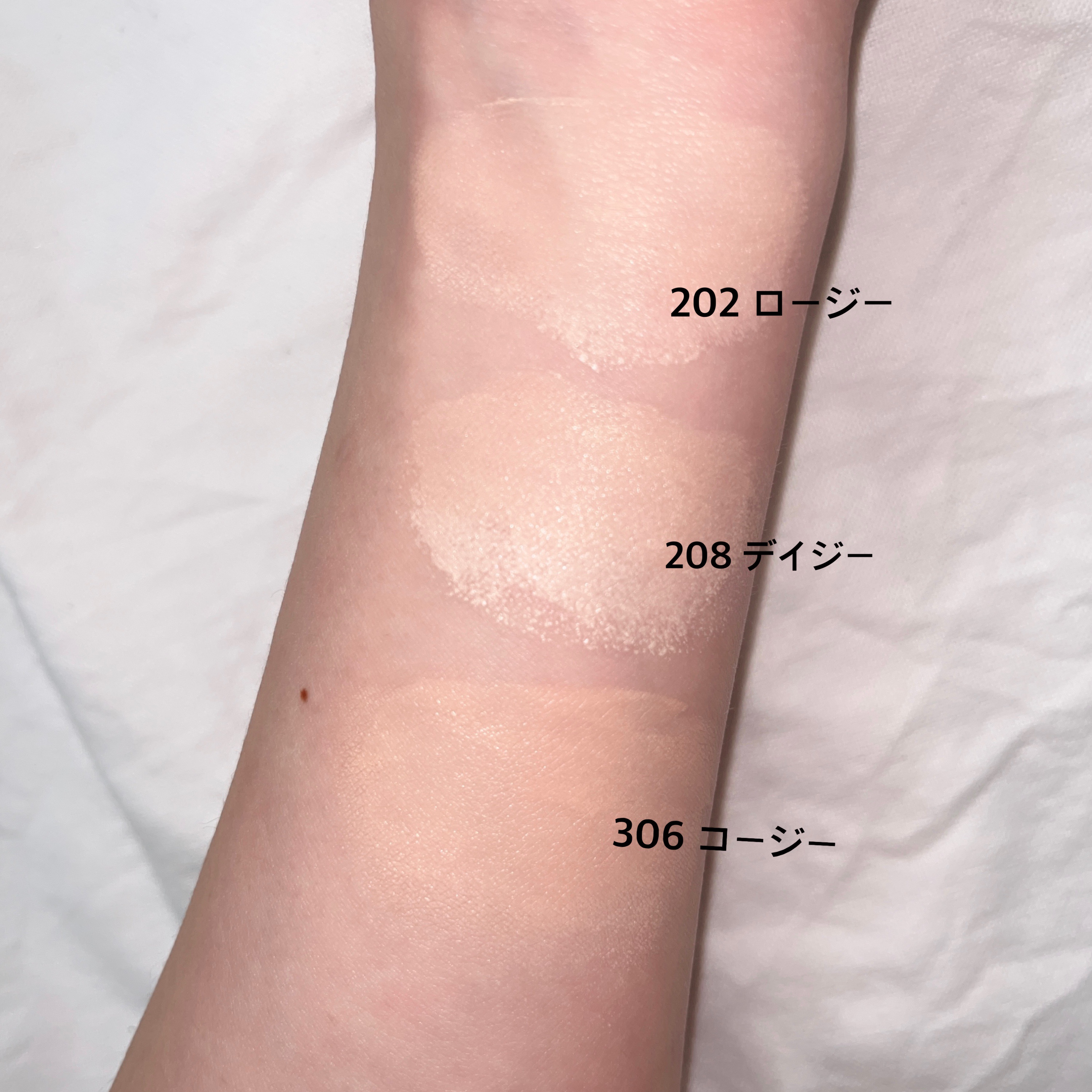 - <202 ロージー> 水,シクロペンタシロキサン,酸化チタン,メトキシケイヒ酸エチルヘキシル,DPG,メチルトリメチコン,酸化亜鉛,ポリメタクリル酸メチル,BG,ラウリルPEG-8ジメチコン,フェニルベンズイミダゾールスルホン酸,ナイアシンアミド,ナイロン-12,トロメタミン,セチルPEG/PPG-10/1ジメチコン,塩化Na,セスキオレイン酸ソルビタン,プロパンジオール,スベリヒユエキス,ジシロキサン,パンテノール,CI 77492,ジステアルジモニウムヘクトライト,安息香酸Na,カプリリルグリコール,(ジメチコン/メチコン)コポリマー,ラウロイルリシン,合成ミツロウ,酢酸トコフェロール,トリエトキシカプリリルシラン,CI 77491,水酸化Al,(トリメチルシロキシケイ酸/ジメチコノール)クロスポリマー,(ジメチコン/ビニルジメチコン)クロスポリマー,ソルビン酸K,ラベンダー油,エチルヘキシルグリセリン,バチルス発酵物,ヒマワリ種子油,アデノシン,CI 77499,エチレンジアミンジコハク酸3Na,ツバキ花エキス,1,2-ヘキサンジオール,ヒアルロン酸Na,加水分解ヒアルロン酸,ヒアルロン酸,シロバナルーピン種子エキス,グリセリン,トリメチルシロキシケイ酸,イチゴ葉エキス,クサスギカズラ根エキス,アウレオバシジウムプルランス培養物,レピジウムメイエニ根エキス,トコフェロール,加水分解コラーゲン,ヒアルロン酸ヒドロキシプロピルトリモニウム,水溶性コラーゲン,アセチルヒアルロン酸Na,加水分解ヒアルロン酸Na,ヒアルロン酸クロスポリマーNa,ヒアルロン酸K,アテロコラーゲン <208 デイジー> 水,シクロペンタシロキサン,酸化チタン,メトキシケイヒ酸エチルヘキシル,DPG,メチルトリメチコン,酸化亜鉛,ポリメタクリル酸メチル,BG,ラウリルPEG-8ジメチコン,フェニルベンズイミダゾールスルホン酸,ナイアシンアミド,ナイロン-12,トロメタミン,セチルPEG/PPG-10/1ジメチコン,塩化Na,セスキオレイン酸ソルビタン,プロパンジオール,スベリヒユエキス,CI 77492,ジシロキサン,パンテノール,ジステアルジモニウムヘクトライト,安息香酸Na,カプリリルグリコール,(ジメチコン/メチコン)コポリマー,ラウロイルリシン,合成ミツロウ,酢酸トコフェロール,トリエトキシカプリリルシラン,水酸化Al,CI 77491,(トリメチルシロキシケイ酸/ジメチコノール)クロスポリマー,(ジメチコン/ビニルジメチコン)クロスポリマー,ソルビン酸K,ラベンダー油,エチルヘキシルグリセリン,バチルス発酵物,ヒマワリ種子油,アデノシン,CI 77499,エチレンジアミンジコハク酸3Na,ツバキ花エキス,1,2-ヘキサンジオール,ヒアルロン酸Na,加水分解ヒアルロン酸,ヒアルロン酸,シロバナルーピン種子エキス,グリセリン,トリメチルシロキシケイ酸,イチゴ葉エキス,クサスギカズラ根エキス,アウレオバシジウムプルランス培養物,レピジウムメイエニ根エキス,トコフェロール,加水分解コラーゲン,ヒアルロン酸ヒドロキシプロピルトリモニウム,水溶性コラーゲン,アセチルヒアルロン酸Na,加水分解ヒアルロン酸Na,ヒアルロン酸クロスポリマーNa,ヒアルロン酸K,アテロコラーゲン <306 コージー> 水,シクロペンタシロキサン,酸化チタン,メトキシケイヒ酸エチルヘキシル,DPG,メチルトリメチコン,酸化亜鉛,ポリメタクリル酸メチル,BG,ラウリルPEG-8ジメチコン,フェニルベンズイミダゾールスルホン酸,ナイアシンアミド,ナイロン-12,トロメタミン,セチルPEG/PPG-10/1ジメチコン,塩化Na,セスキオレイン酸ソルビタン,プロパンジオール,CI 77492,スベリヒユエキス,パンテノール,ジシロキサン,ジステアルジモニウムヘクトライト,ラウロイルリシン,安息香酸Na,(ジメチコン/メチコン)コポリマー,合成ミツロウ,酢酸トコフェロール,CI 77491,水酸化Al,(トリメチルシロキシケイ酸/ジメチコノール)クロスポリマー,トリエトキシカプリリルシラン,(ジメチコン/ビニルジメチコン)クロスポリマー,ソルビン酸K,ラベンダー油,バチルス発酵物,ヒマワリ種子油,ポリヒドロキシステアリン酸,CI 77499,EDTA-2Na,アデノシン,パルミチン酸エチルヘキシル,ミリスチン酸イソプロピル,イソステアリン酸,レシチン,ツバキ花エキス,ポリリシノレイン酸ポリグリセリル-3,1,2-ヘキサンジオール,ヒアルロン酸Na,加水分解ヒアルロン酸,ヒアルロン酸,シロバナルーピン種子エキス,グリセリン,トリメチルシロキシケイ酸,イチゴ葉エキス,クサスギカズラ根エキス,アウレオバシジウムプルランス培養物,レピジウムメイエニ根エキス,加水分解コラーゲン,ヒアルロン酸ヒドロキシプロピルトリモニウム,水溶性コラーゲン,トコフェロール,アセチルヒアルロン酸Na,加水分解ヒアルロン酸Na,ヒアルロン酸クロスポリマーNa,ヒアルロン酸K,アテロコラーゲン
