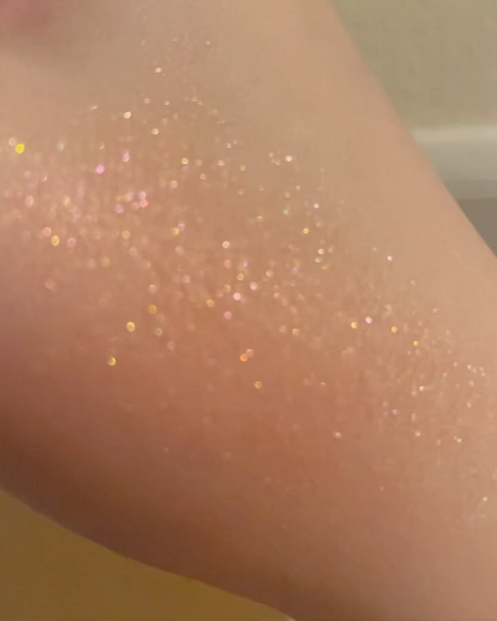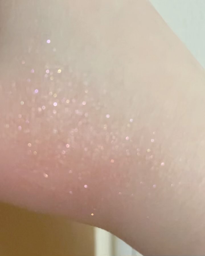 このラメ塗り広げると簡単に小さいラメ、大きいラメがいい感じに塗り広げられます✨ 輝度感が凄く高くて遠くからみてもキラッキラですごい。 わたしが持ってるラメの中で1番大粒なのでメイクにつかってみて新鮮なメイクが出来そうでワクワクしてます(*∩∀∩*)