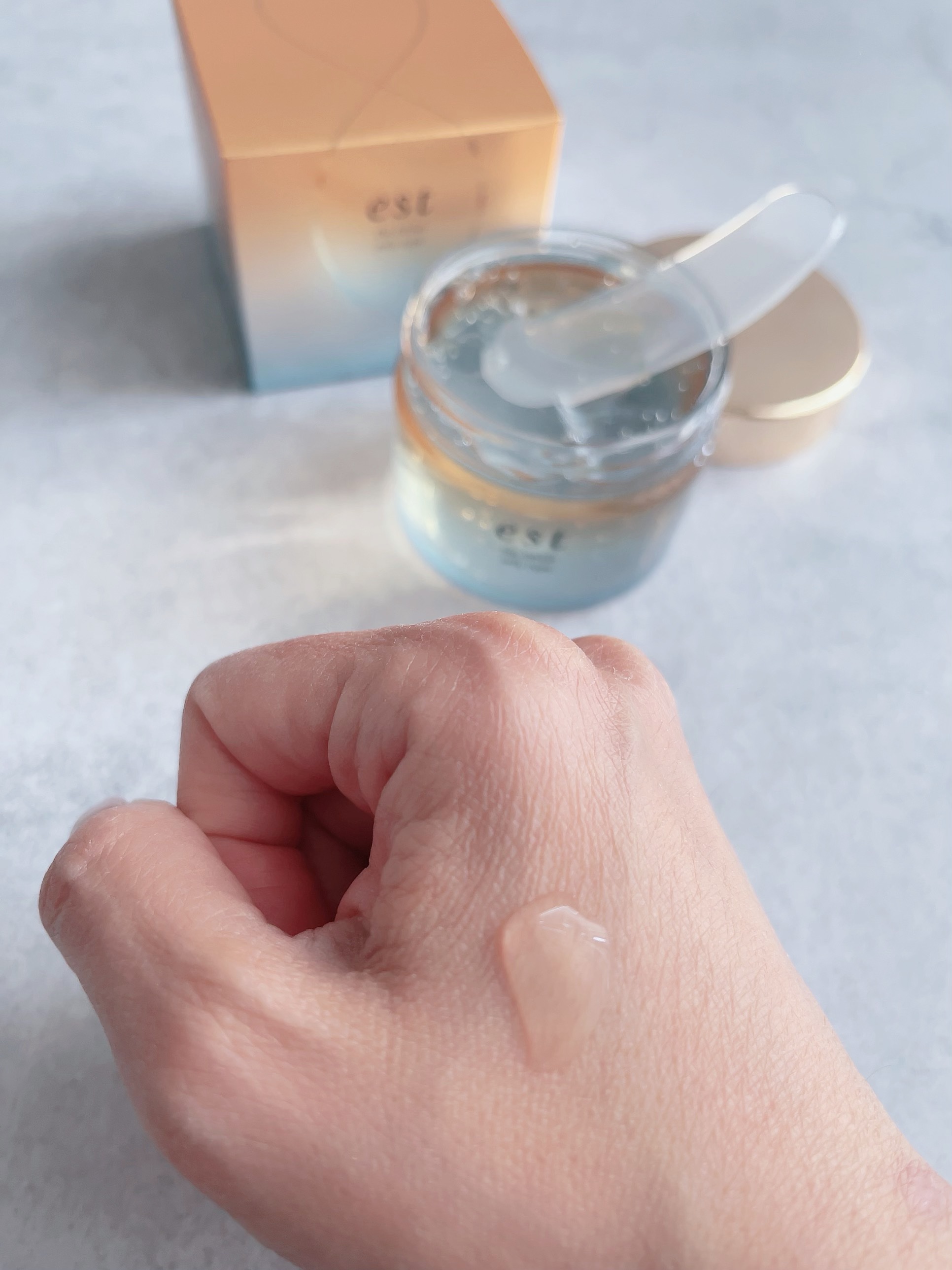 ぷるんぷるんのゼリーのようなジェル状のテクスチャーは、少し硬めなので液ダレせずに使えるのでお肌に伸ばしやすい✨ ベタベタすることなく使えて、さっぱりとした使い心地なので他のスキンケアと併用したり、気になる箇所には重ね付けしたりして使えます🌿 このオールインワンゲル1つで、基本的なスキンケアができるので忙しい朝にも嬉しいアイテムです✨