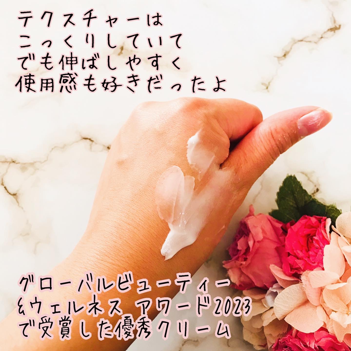 しわ改善・美白機能性化粧品 美容成分として ヒアルロン酸/ペプチド/セラミド/アデノシン/ ナイアシンアミド配合 最新技術”ダミーシャトル”で、角質層まで潤いを届け、 気になる小じわやほうれい線に効果的とか こっくりしたテクスチャーなのにベタつかず、潤いを感じながらも リフトアップ効果を期待できるとあり、 使い続けるのが楽しみです