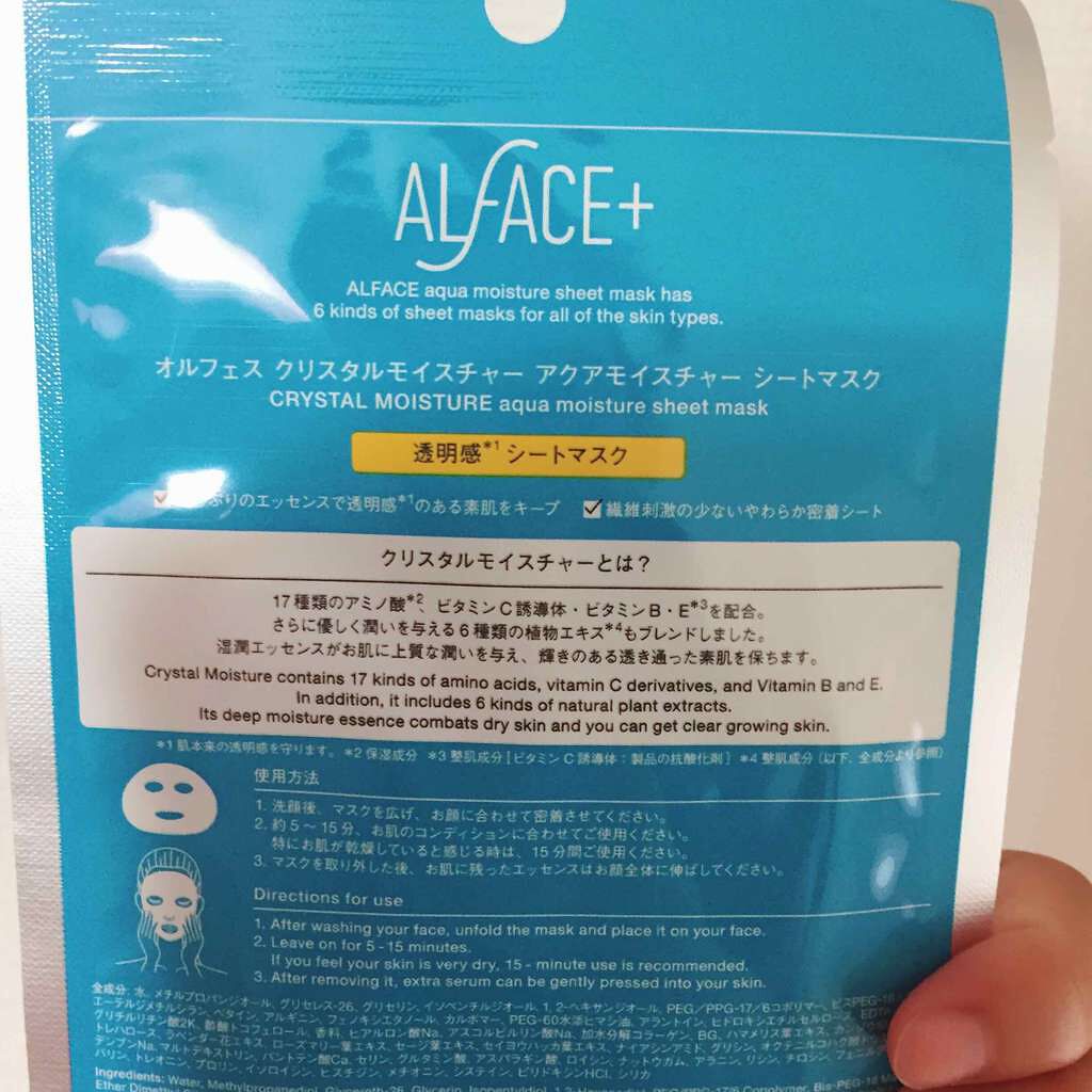 商品詳細情報ALFACE+ クリスタルモイスチャー アクアモイスチャー シートマスク