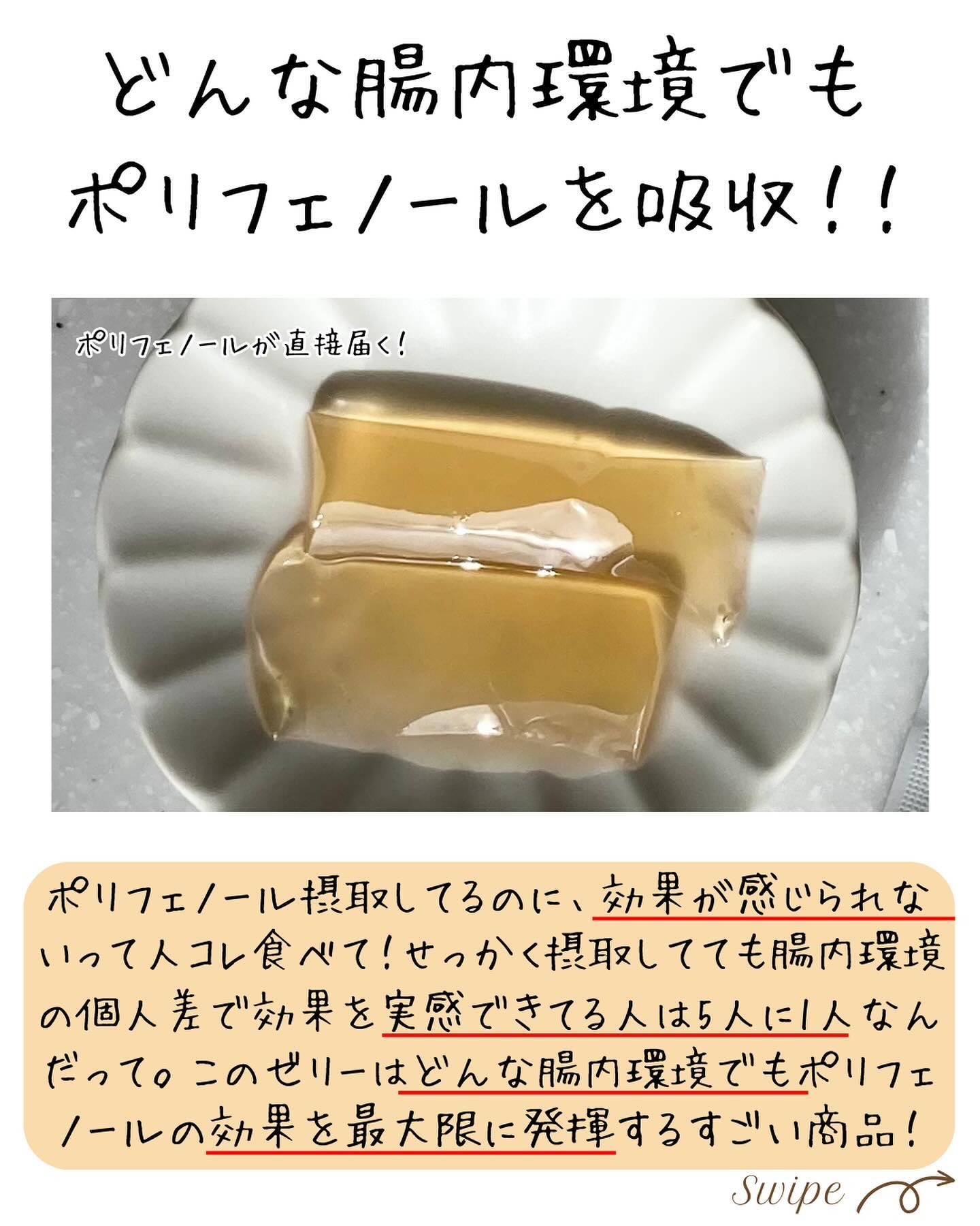 美容や健康のサポートに効果的とお馴染みのポリフェノールの効果を活かして、お腹の脂肪減少・食後血糖値の急上昇抑制といった体に嬉しく美味しいゼリー♥️ 発酵研究から生まれた米ぬか由来原料のアクティボディ®RB(機能性表示原料)を中心に、L-カルニチン、生コーヒー豆エキス、酵素処理ヘスペリジンなどが配合されています。 味もさっぱり甘いグレープフルーツ味で、個人的にとてもお気に入りです😍