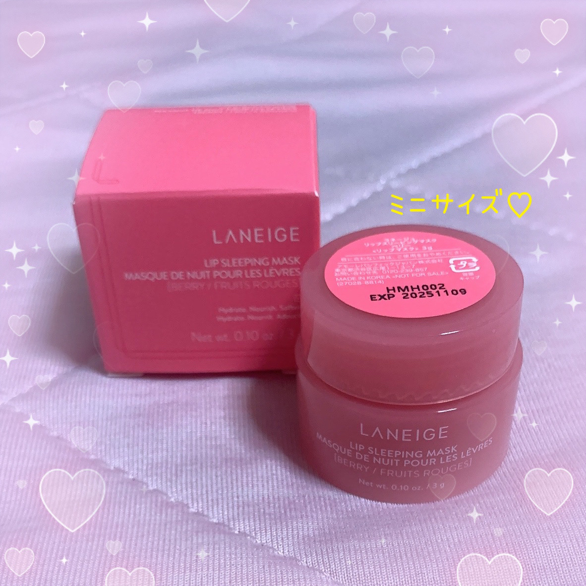 - 寝ている間にケアしてふっくらぷるぷるにうるおった唇へ。 2015年の初代発売以降、世界で2秒に1個売れている*¹LANEIGE大ヒットシリーズ *¹ 2024年グローバル販売実績 1.角質にアプローチするBerryFruitComplex (ベリーフルーツコンプレックス)*²が、 寝ている間に気になる乾燥や角質にうるおいを与え、つやのあるふっくらとうるおった唇に仕上げます。 *²ザクロ果実エキス、ブドウ果実エキス、ラズベリー果実エキス 2.ココナッツオイル(ヤシ油)を配合で、うるおいをあたえ睡眠中の乾燥を防ぎます。 3.今夜はどんな気分?5つのフレーバーから選べるワクワク感。 ■テクスチャー:やさしく馴染むなめらかなバームタイプ ■アレルギーテスト済み*³ *³全ての方にアレルギーが起こらないということではありません。 ■使用方法 寝る前に唇にたっぷり塗り、そのままお休みください。 翌朝、軽くティッシュオフします。付属のスパチュラで塗ることで、より唇の角質に馴染みやすくなります。 日中のリップトリートメントにも使用できます。