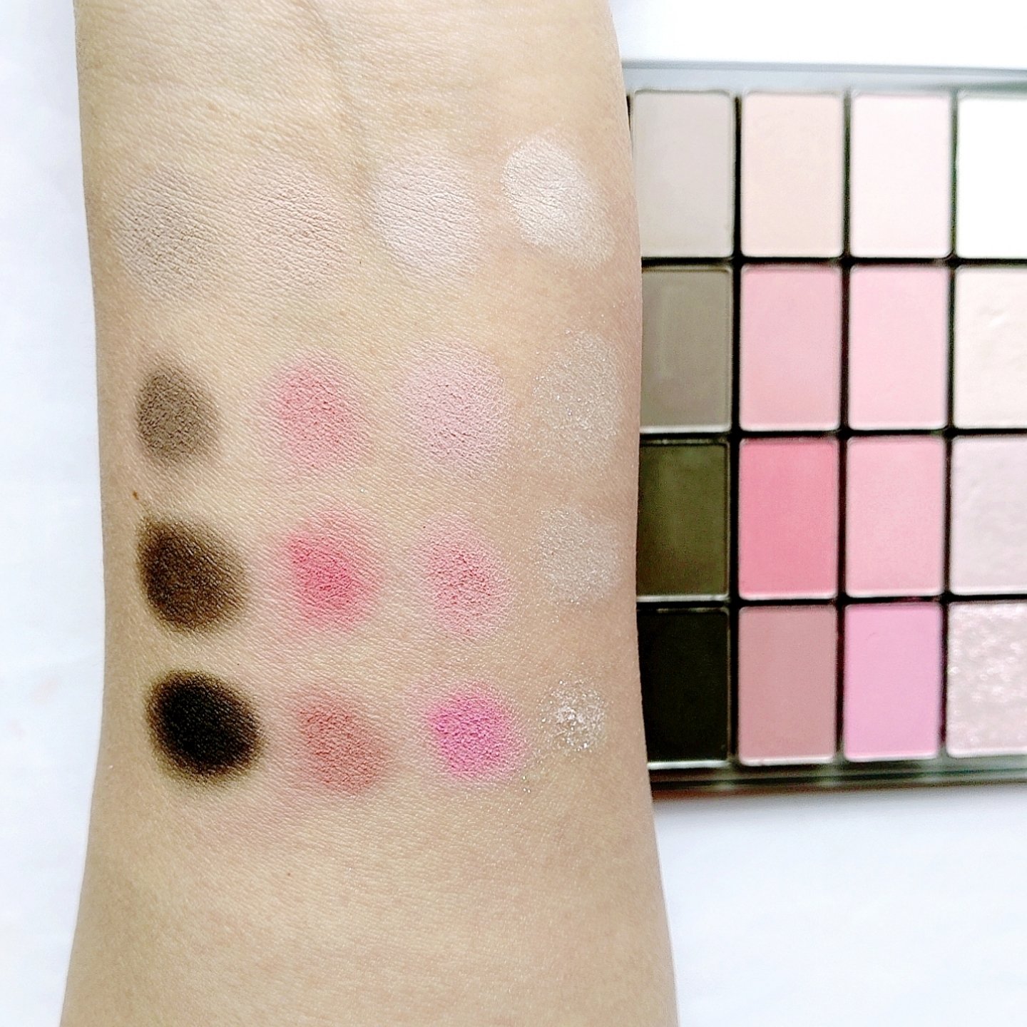 プチプラのクオリティじゃないっ!! 発売前からチェックしていたけれど、ここまで可愛いとは…😆 絶妙カラーで目もとのくすみを飛ばして*明るい印象に🩷 横割りグラデーションでメイクし、立体感をより出したかったので最後に1番左のカラーを上まぶたの真ん中と涙袋にのせています🙆 肌馴染みも良くて粉飛びも感じにくかったです💕 ブラウンの方も店頭に出てたら買おうかな💓