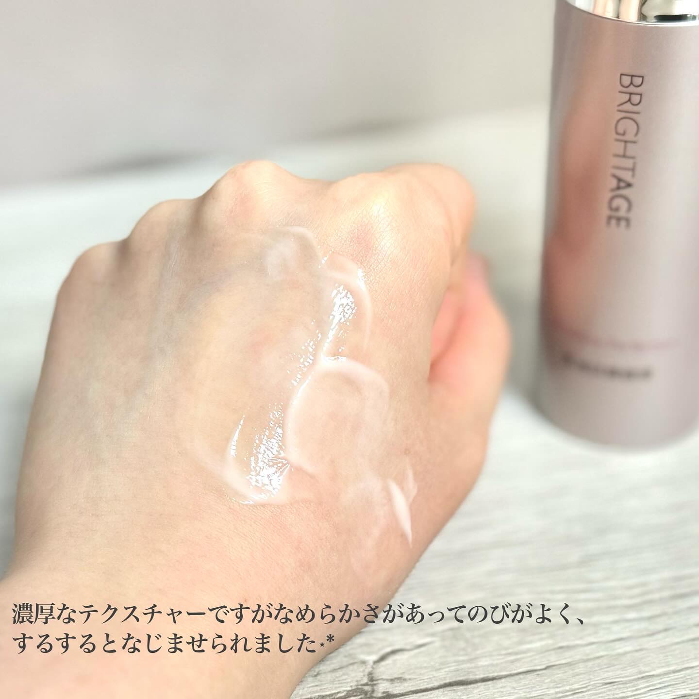 ブライトエイジは製薬会社である第一三共ヘルスケアが開発したスキンケアシリーズでエイジングケア*¹したい方に。 薬用有効成分としてトラネキサム酸とグリチルリチン酸2KがWで配合されており様々な年齢肌*²悩みの根本原因にアプローチしてくれるそう 高保湿設計なので乾燥を感じやすい冬にもぴったりな使用感美容液と乳液がこちら1つで済むのでシンプルケアをしたい時にも。
