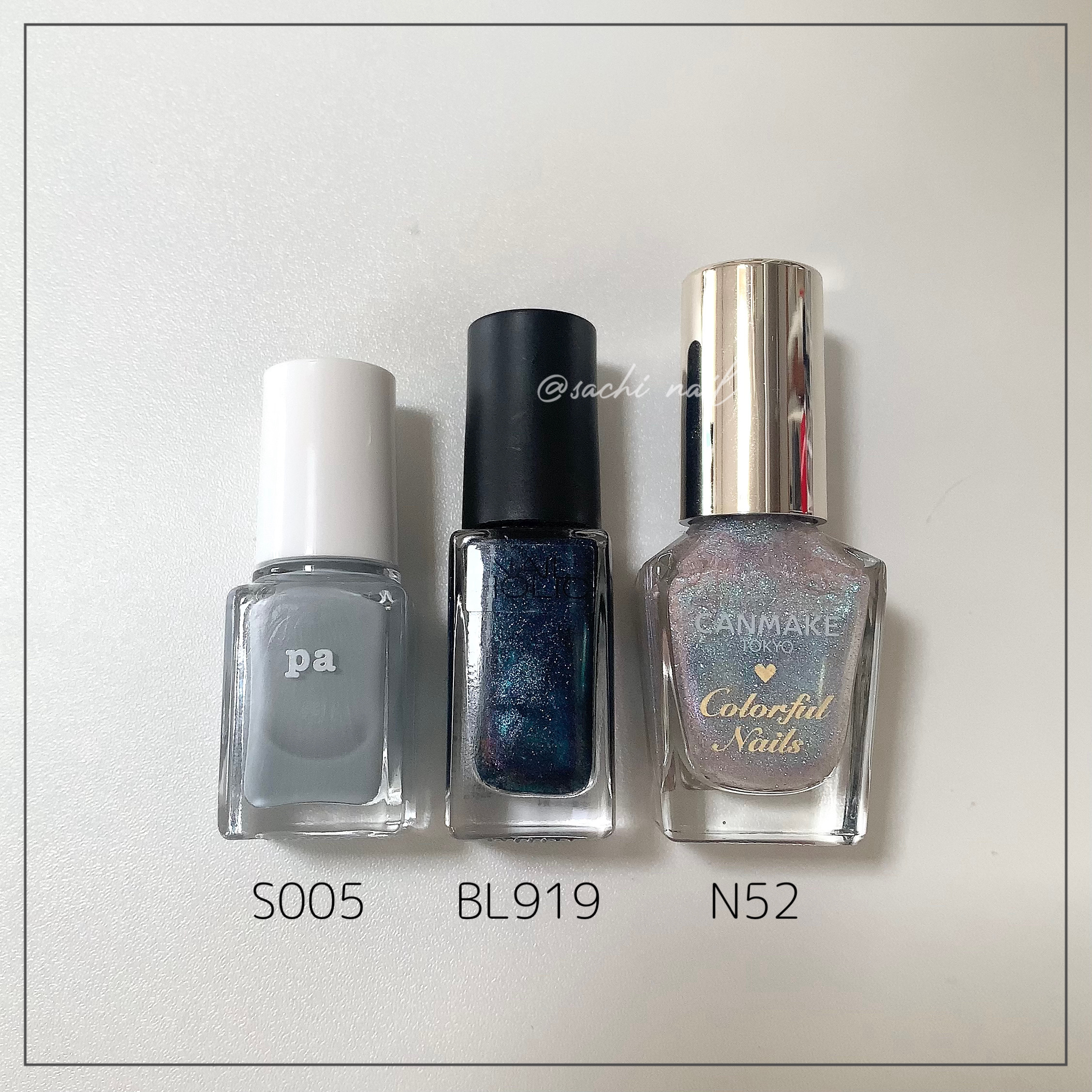 ネイルホリック新作を使用した💅🏻プチプラと100均で簡単にできる!幻想的天の川ネイル🌌~.。☆︎︎︎︎︎︎☑︎つくり方等は2枚目からの画像でどうぞこんなカラー欲しかった♡絶妙くすみブルーの〚BL010K〛ネイルホリック6月発売の新作です!ネイ...