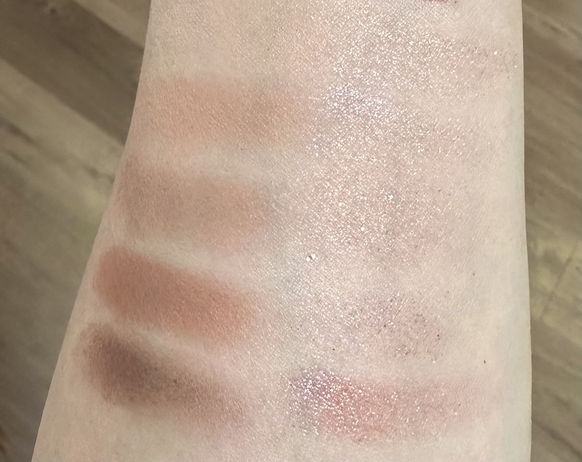 excel スキニーリッチシャドウ💎 SR10 青みピンクベージュのシックなパレット。しっとりとした粉質で、パール感が美しい😍✨ プチプラとは思えないテクスチャーでびっくり❣️ 実際に使ってみると、SUQQUの名品アイシャドウ、絢撫子と近い雰囲気だと思った🥰 女っぽ秋メイクにおすすめ💖 良かったら参考にしてね😘