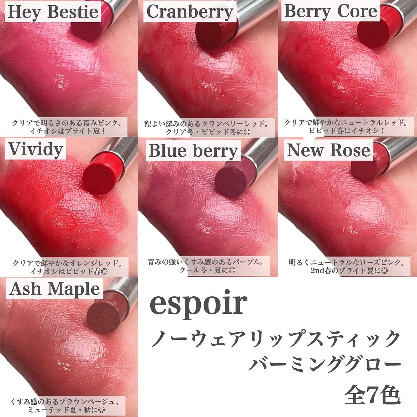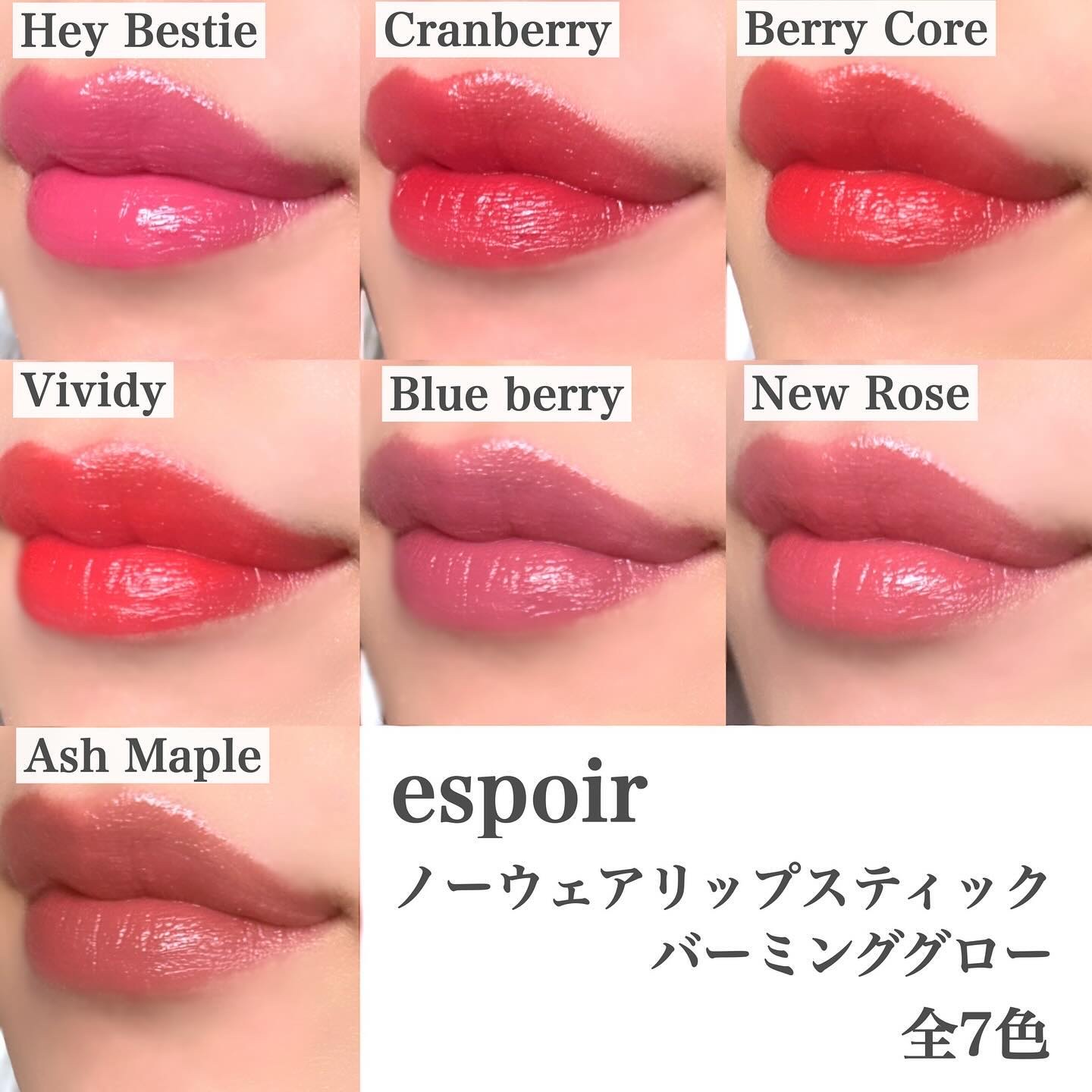 𓊆ྀིespoir新作!!𓊇ྀི塗りやすくて透明感たっぷりのバームリップから新色登場!!!!NudyBerry熟してないやわらかい光に照らされたヌードベリーシェードMerryBerry落ち着いたベリーピンクにクールなアンダートーンBerryC...