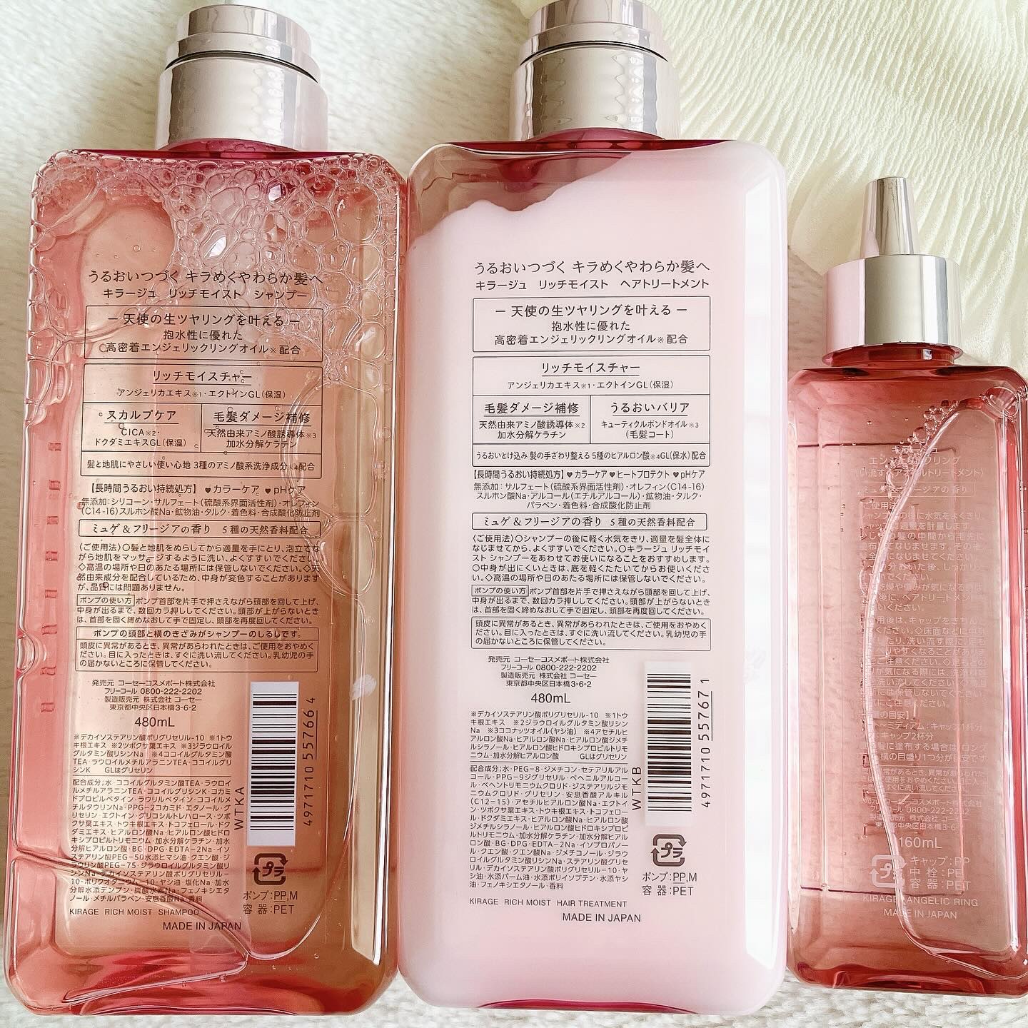 \\キラージュ様のプレゼントキャンペーンに当選しました💝//「天使の生ツヤリング」を叶える高密着エンジェリックリングオイル(*1)を、全てのアイテムに配合したキラージュ💖今回はキャンペーンを通して・リッチモイストシャンプー・リッチモイストヘア...