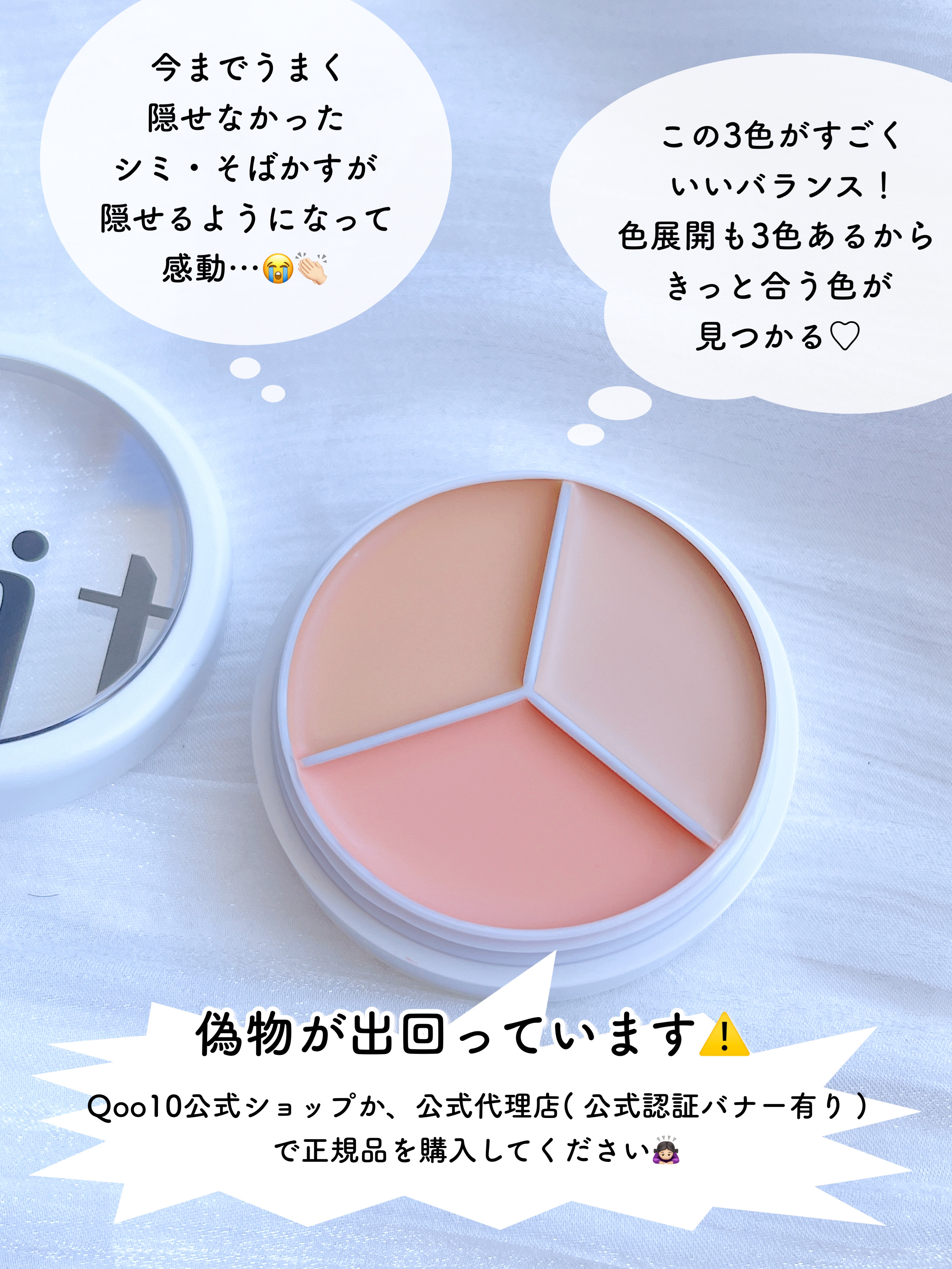 - クマからニキビ跡、シミまでこれ1つでカバー。 3色タイプだからこそ、気になるところや肌色を選ばずにご使用いただけます。 リキッドタイプを圧縮した高濃度バームのため高カバー高密着*¹を実現。 コンシーラーだけでなくコントアとしても使用可能です。 *1メーカー比