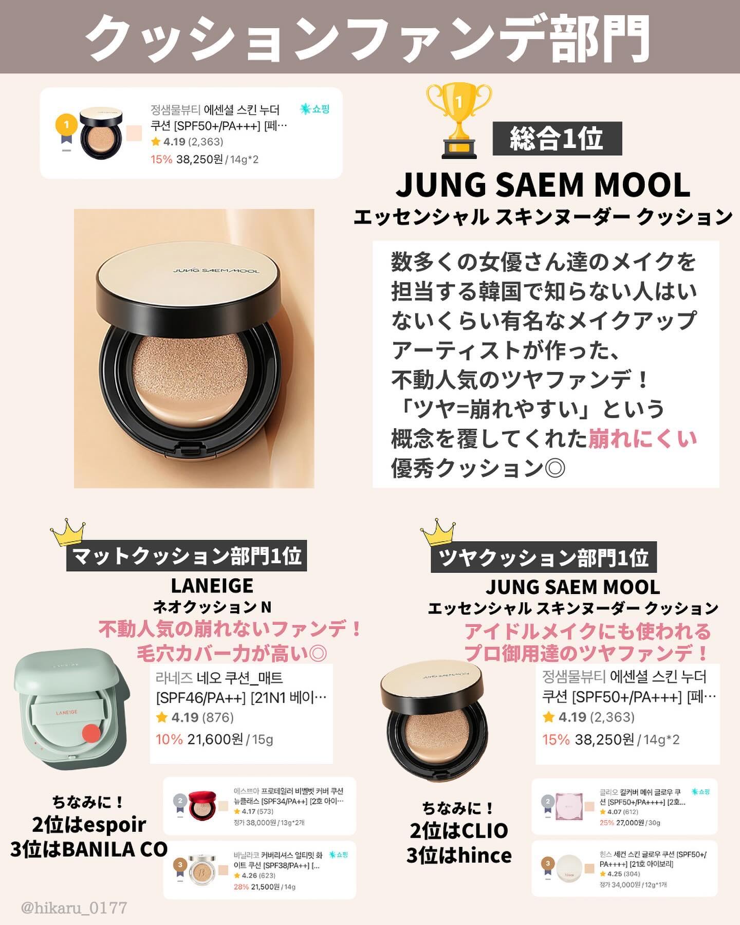 この中でも、ご相談いただいた時にまずオススメするのがジョンセンムル🙌 カラーや肌質など、ご自身にあったものを選べるのですが、私はトーンアップを使ってます💕 全体的なバランスが良いので、ひかるの中でも使用頻度が高いアイテムです💪✨ パパパッとメイクを済ませたいときや、ノーファンデな日にはナンバーズイン😍 これあると便利ですよ〜💓 商品名の通り、陶器肌に仕上がるし、マスクに本当に付きにくい✨ 保湿力やツヤ感、テクスチャーやカバー力など、それぞれ星や画像を参考に比較して、お買い物の参考に少しでもなれば嬉しいです🙌💕