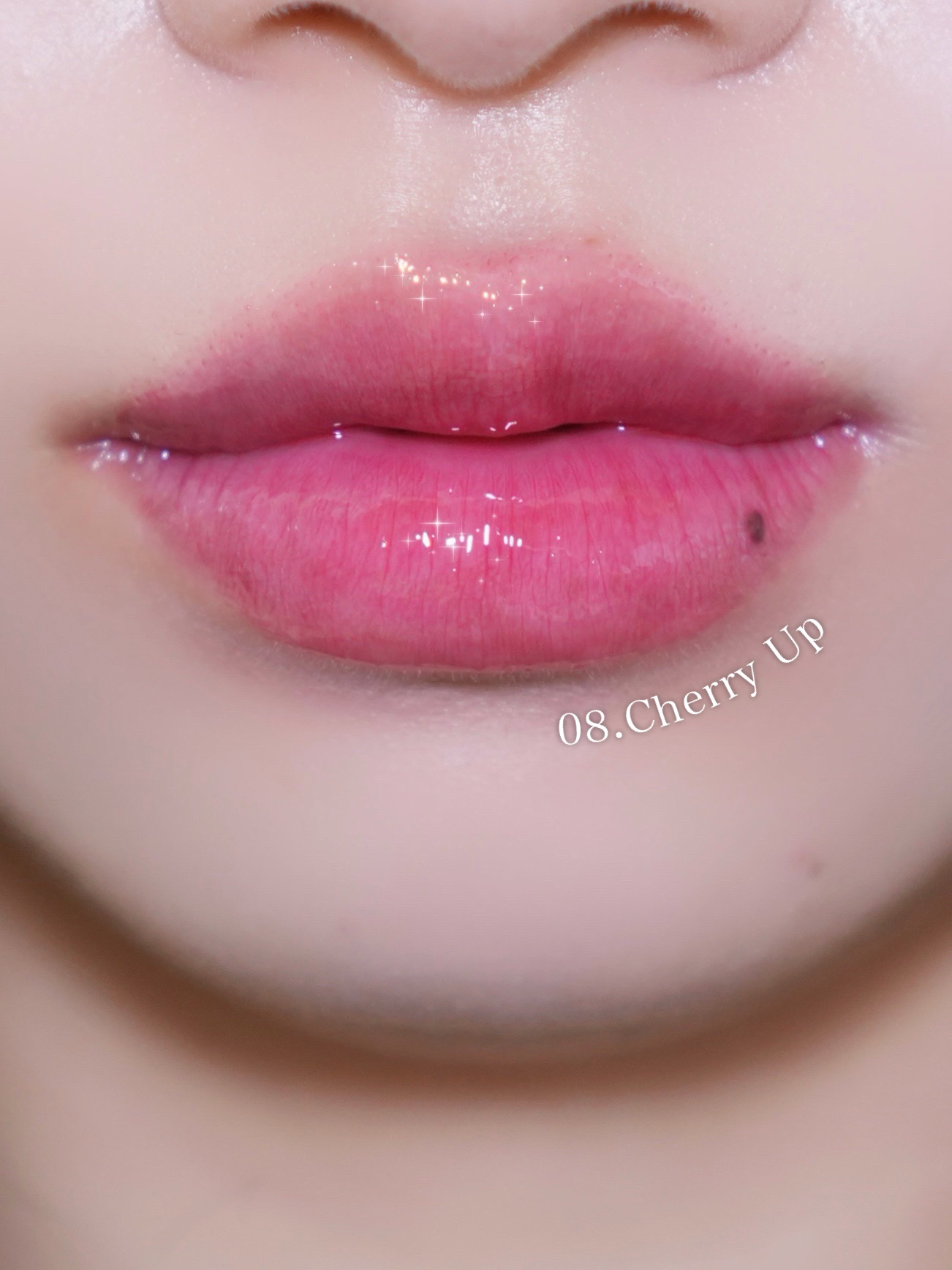 どちらもめちゃくちゃかわいすぎて…🥹🫶🏻 この2つはブルベさん向けカラーで、明るめが好きな方は03、深めカラーが好きなら08で選ぶといいよദ്ദി^._.^) オイルっぽいツヤを感じられるリップです❣️