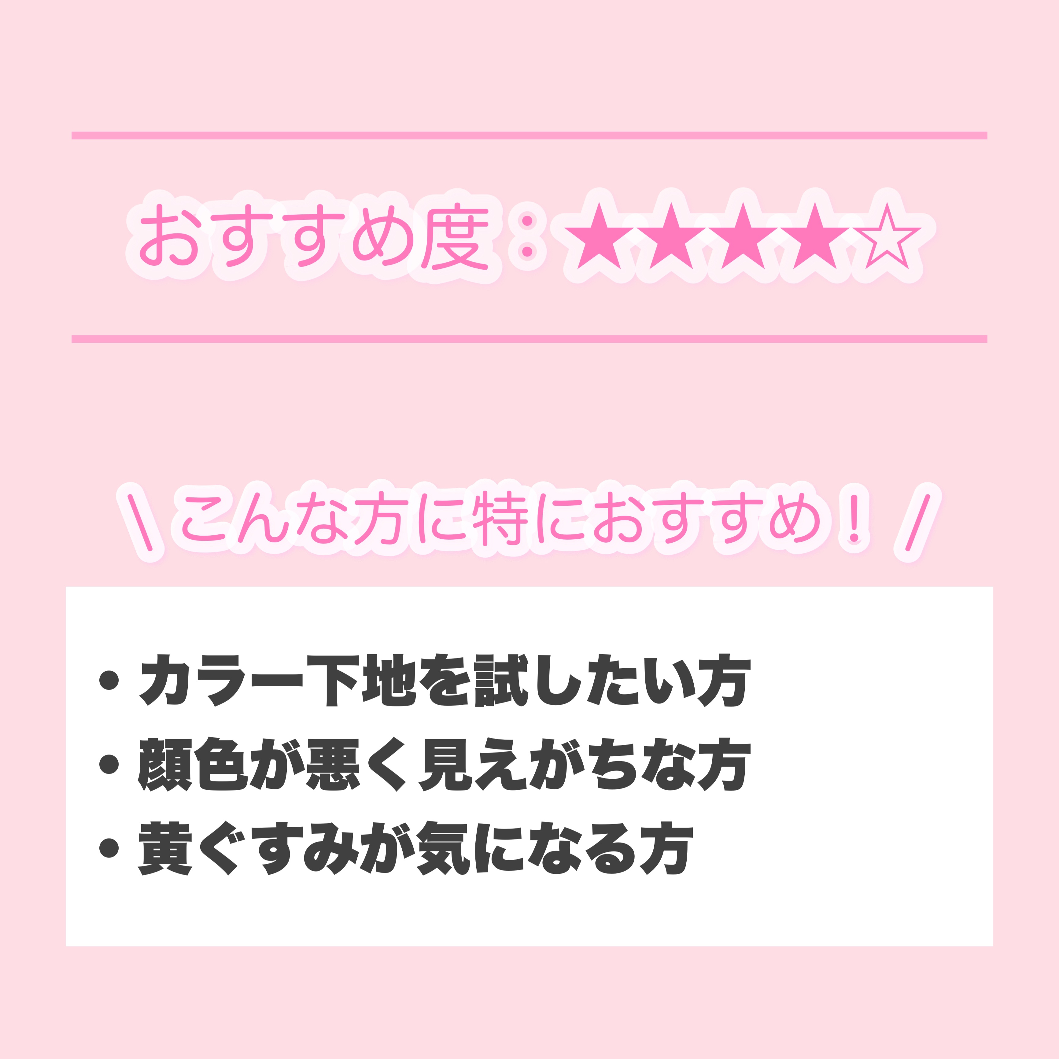 私は乾燥肌なので下地によっては日中カサつきが気になるのですが、この下地は1日乾燥せずにしっとりと使えました😍 保湿力が高い所は凄く推しポイント👏🏻ですが、塗った後に特に乾燥が気になる部分は少しムラが出来てしまいました、、、 なので乾燥が気になる方はスキンケアや日焼け止めの後の保湿がしっかりされてるお肌にのせるのが◎ カバー力はそこまでないのでナチュラルベースメイクがお好みの方にもおすすめです😊