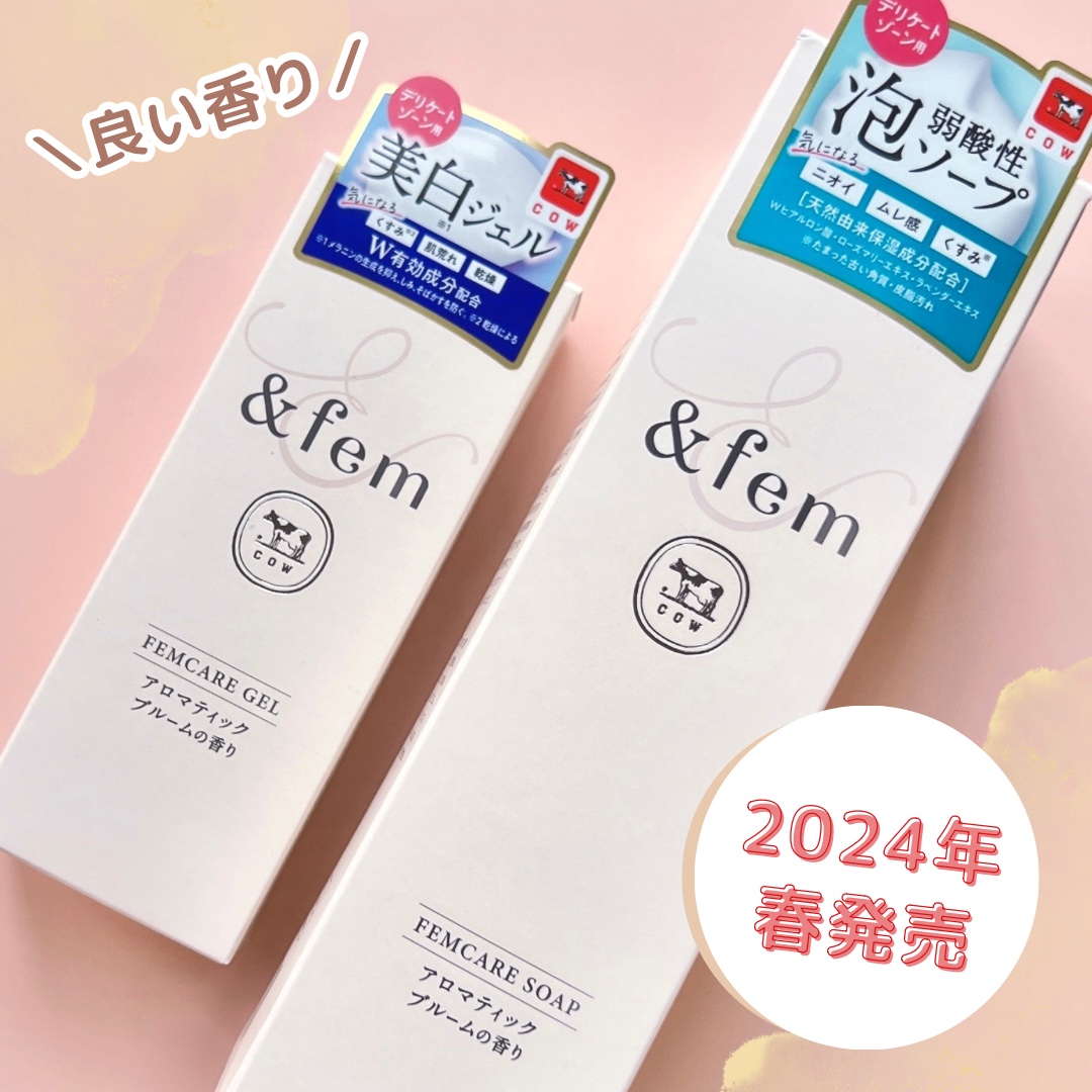 赤箱でおなじみの「牛乳石鹼」から初めて誕生したフェムテックブランド🍼&fem(アンドフェム)フェムケア泡ソープフェムケア美白ジェル▶︎フェムケア泡ソープワンプッシュで濃密泡で出てくるタイプで使いやすい🫧デリケートゾーンと同じ弱酸性処方な...