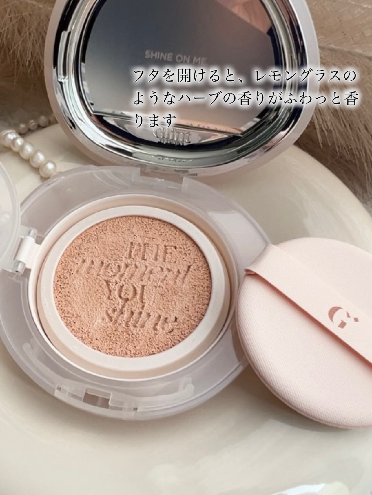 Glintベストセラーであるハイライターの粒子を配合し お肌のトーン・キメ・ツヤを演出してくれるクッションファンデ✨ 水分キープ力とエッセンス62%配合でスキンケア並の成分‼︎ 華やかなうるツヤ肌を演出してくれるのが嬉しい‼︎