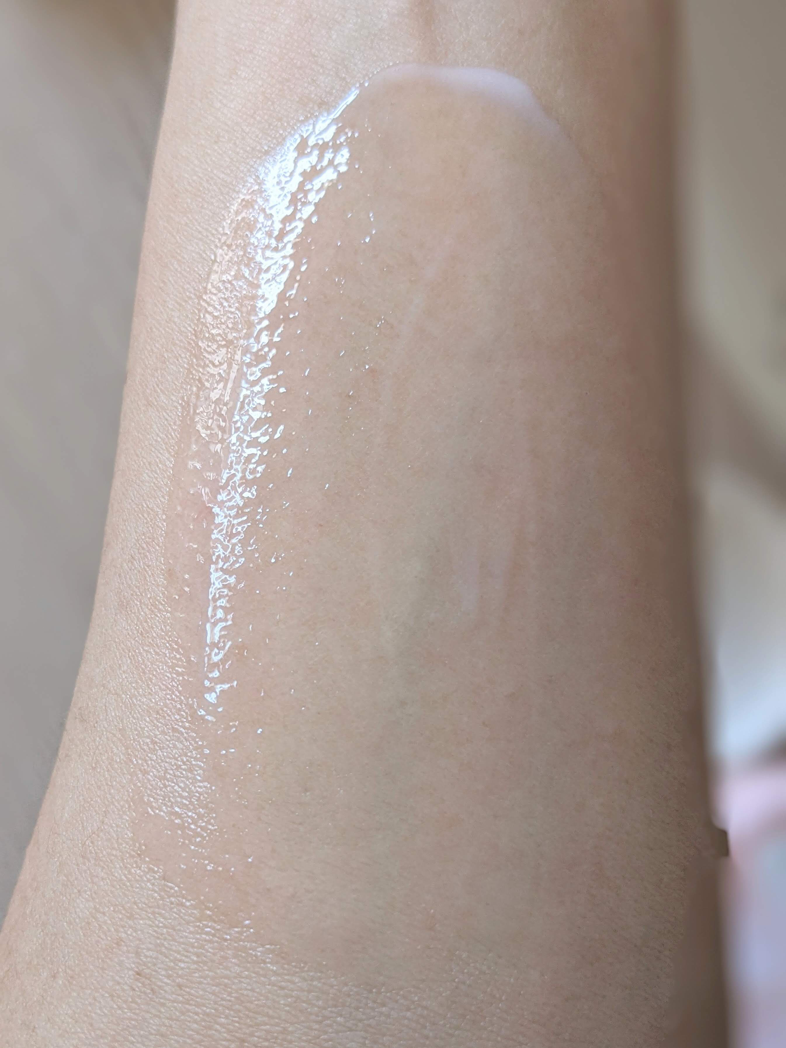 見た目の可愛いさもさることながら、プッシュして初めてボールが弾けるから、最後まで鮮度を保ったまま使えるのもいいなと思いました♪ テクスチャーは、透明なジェルでとろーんと、とろみがあります❤️ 肌に伸ばすとみずみずしく、しっとりと潤う感じ♪ 肌に吸い付く感じでペトペトします。ちょっとベタつきが気になるかな。 香りは爽やかな感じで気になりません◎ 私は若干痒みがでます。花粉が肌が敏感になってるのでそのせいかもしれません☆