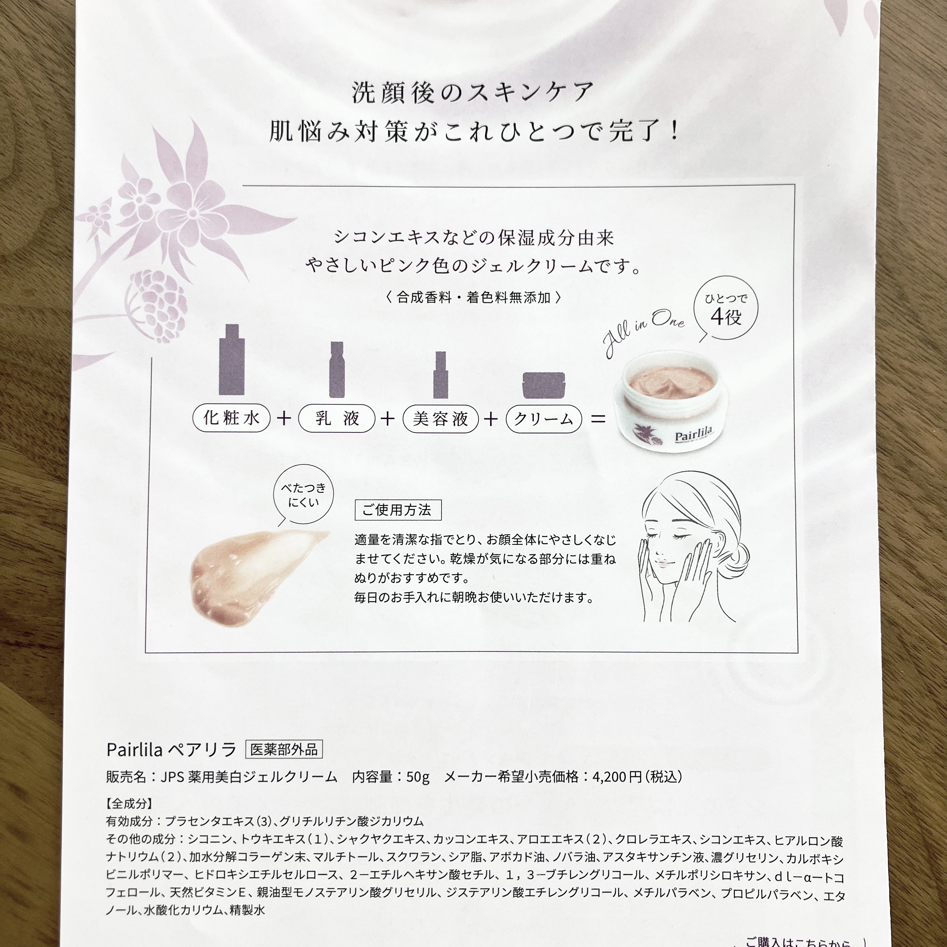 漢方メーカーのジェーピーエス製薬が開発したPairlila(ペアリラ)をお試し✨🍀商品名ペアリラ 薬用オールインワンジェルクリーム販売名JPS薬用美白ジェルクリーム〈医薬部外品〉🍀商品の特徴和漢のチカラで凛とした「ゆらぎない肌」へ漢方メーカー...