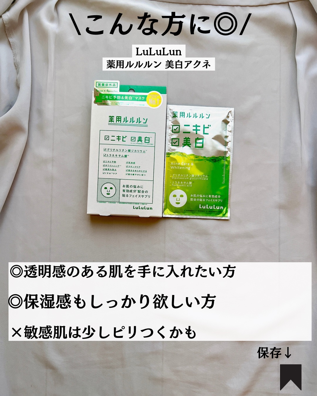 \\LuLuLun//▫️薬用ルルルン美白アクネ透明感のあるすべすべ肌へ導く🌿ニキビ予防&美白*マスク🫧抗炎症有効成分、グリチルリチン酸ジカリウム!美白*有効成分、トラネキサム酸🤍肌に吸いつくように密着するなめらか高密度シート🩵*メラニンの生...