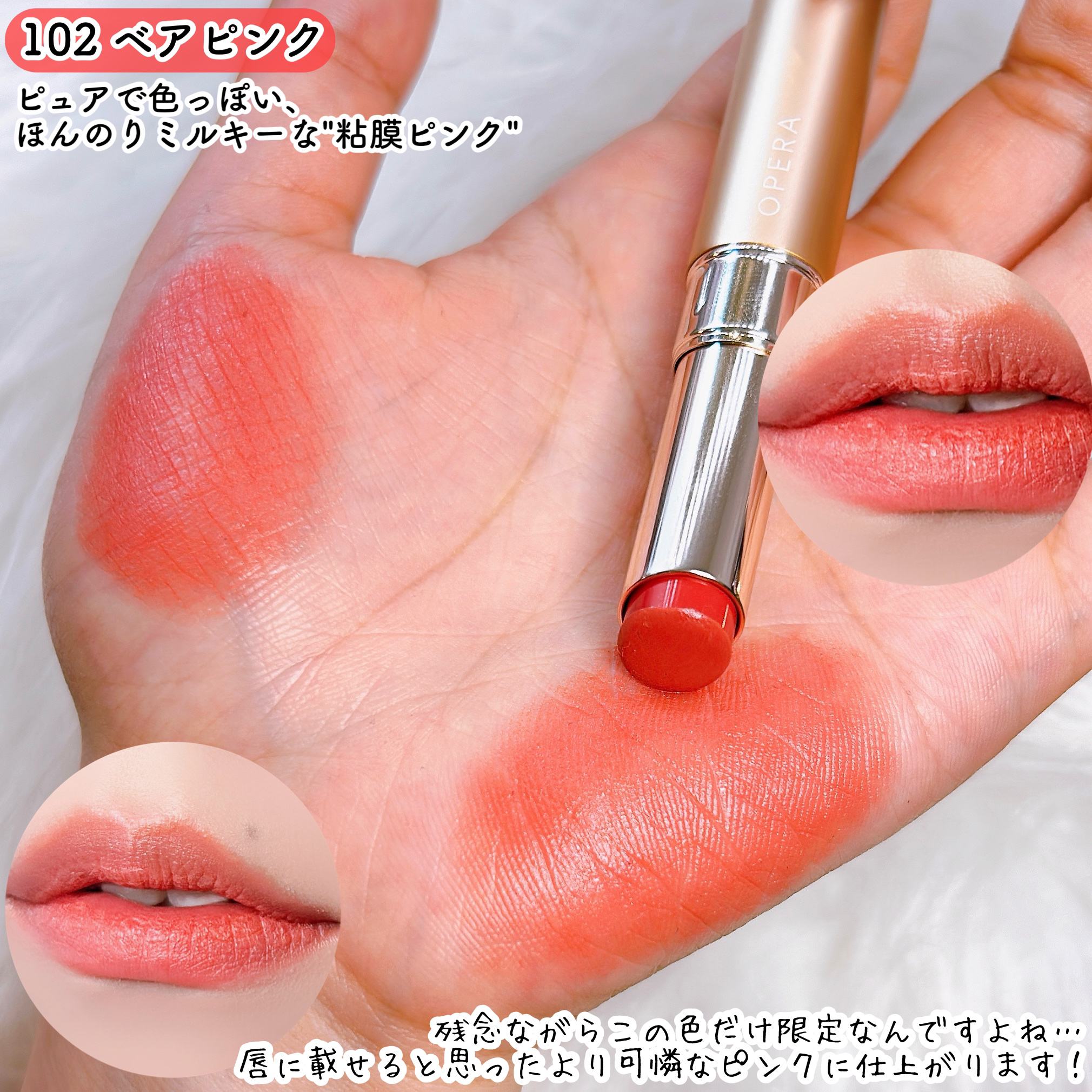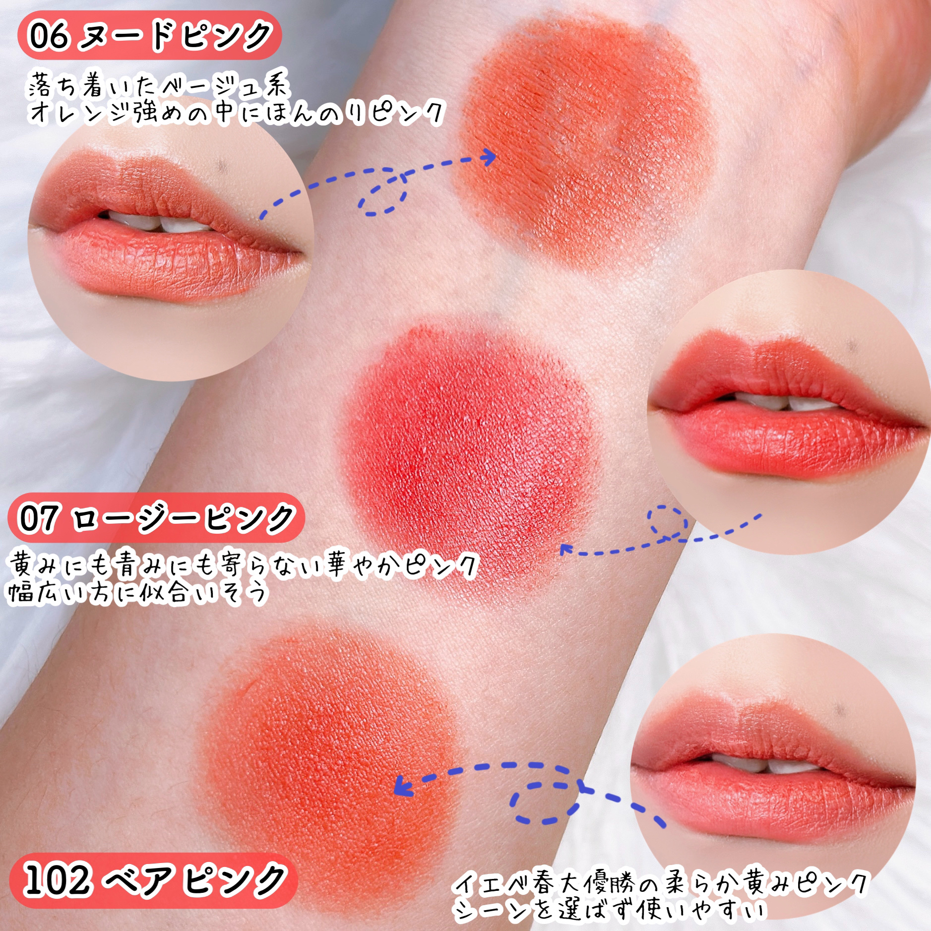 つけ心地も滑らかで乾燥しにくい とっても使いやすいカラー✨️ ツヤリップ派だけど、使いやすいマット具合。もうすぐ新色もまたでるみたい🩵 OPERAオペラ シアーマットリップスティック 06ヌードピンク 07ロージーピンク 102ベアピンク