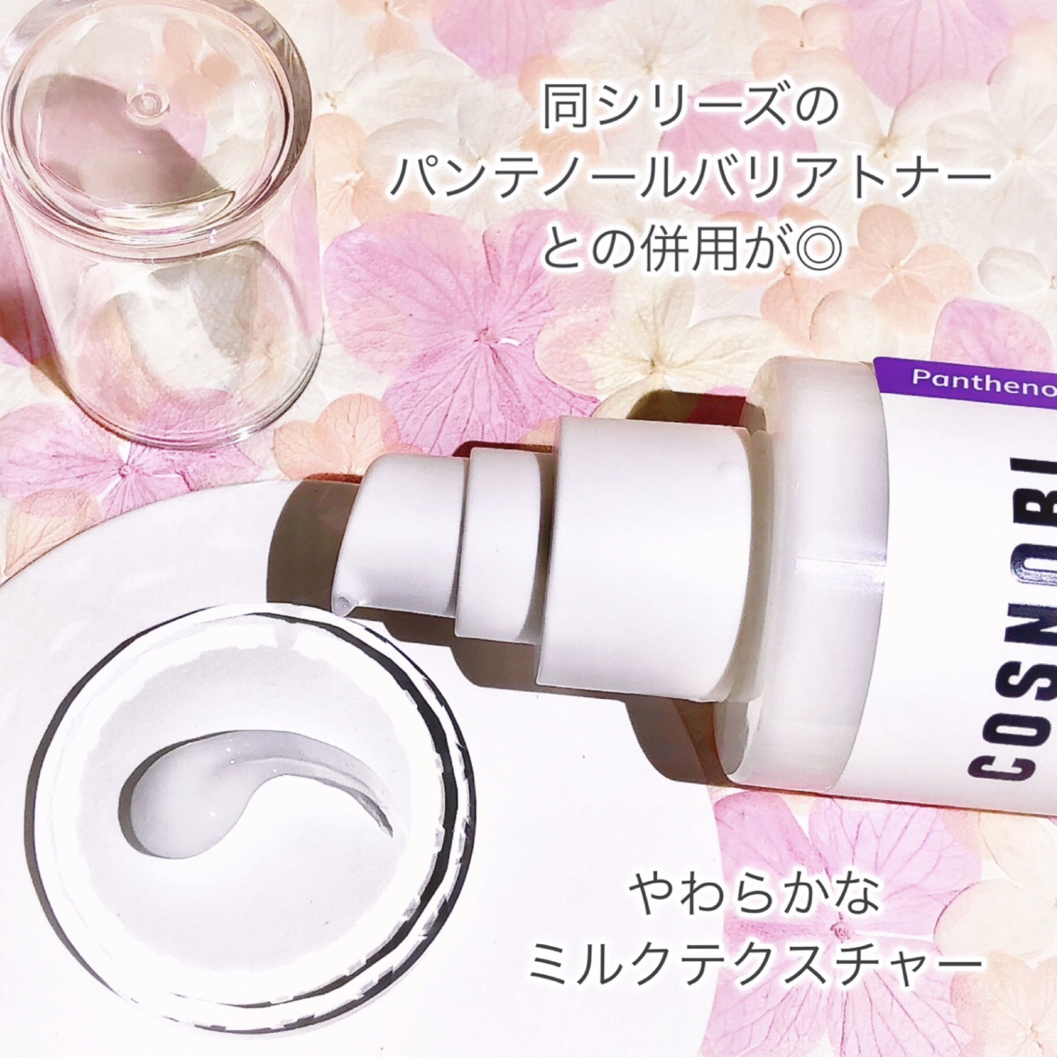 アンバサダーをさせていただいているCOSNORI💖パンテノールバリアトナーパンテノールバリアエマルジョンバリアケアから肌キメケアまで水分チャージしてくれる化粧水と、バリア強化してくれるしっとり乳液..🫶さらっとしたトナーは重ね付けしても拭き取...