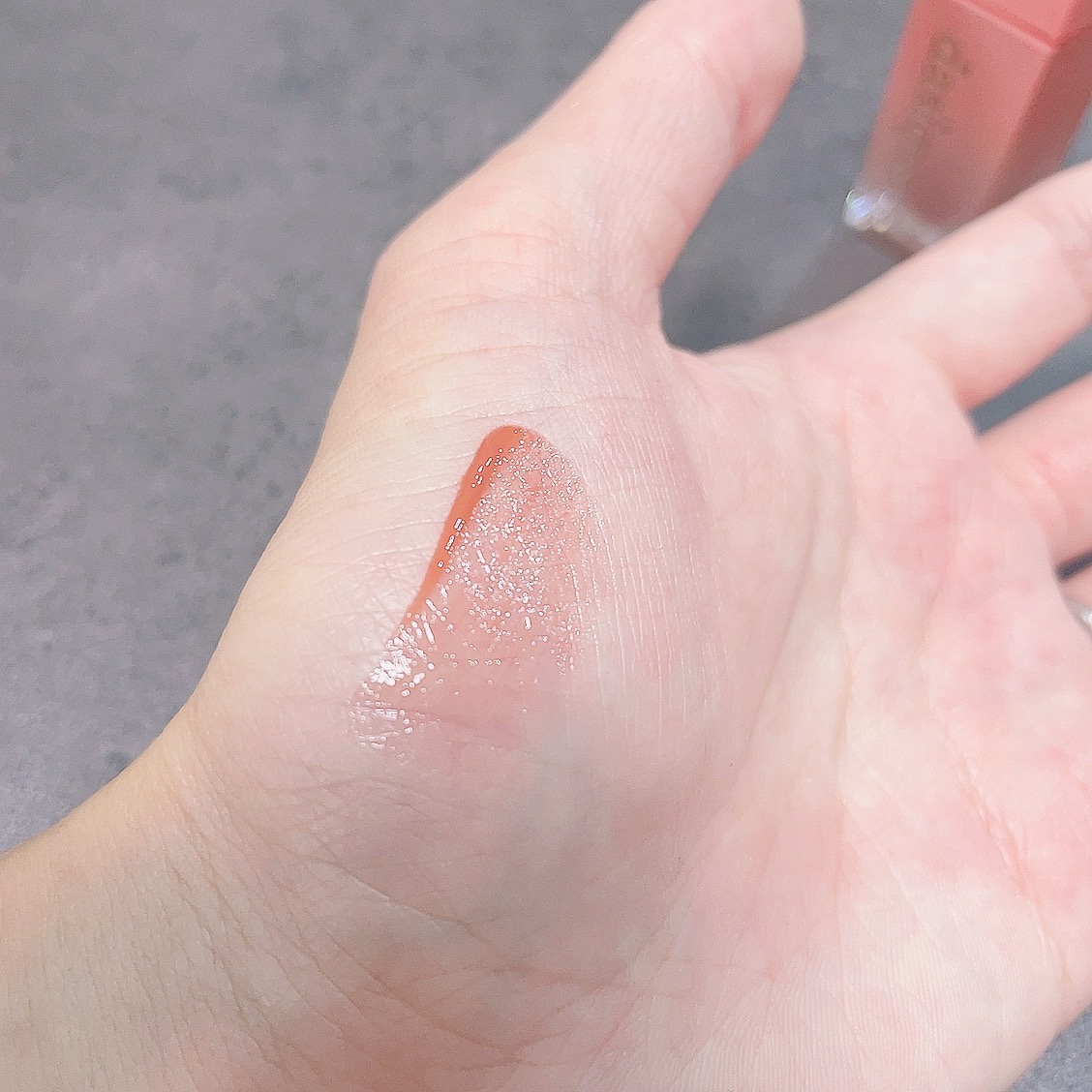 蓋がラメラメでパケからテンション上がる、、♡ 香りも甘い香りがして食べたくなりました笑 イエベ春っぽいカラーを探してて、公式画像でコーラルピンクっぽかったので選んでみました! 発色も割と薄付きでナチュラルメイクにいいと思います!