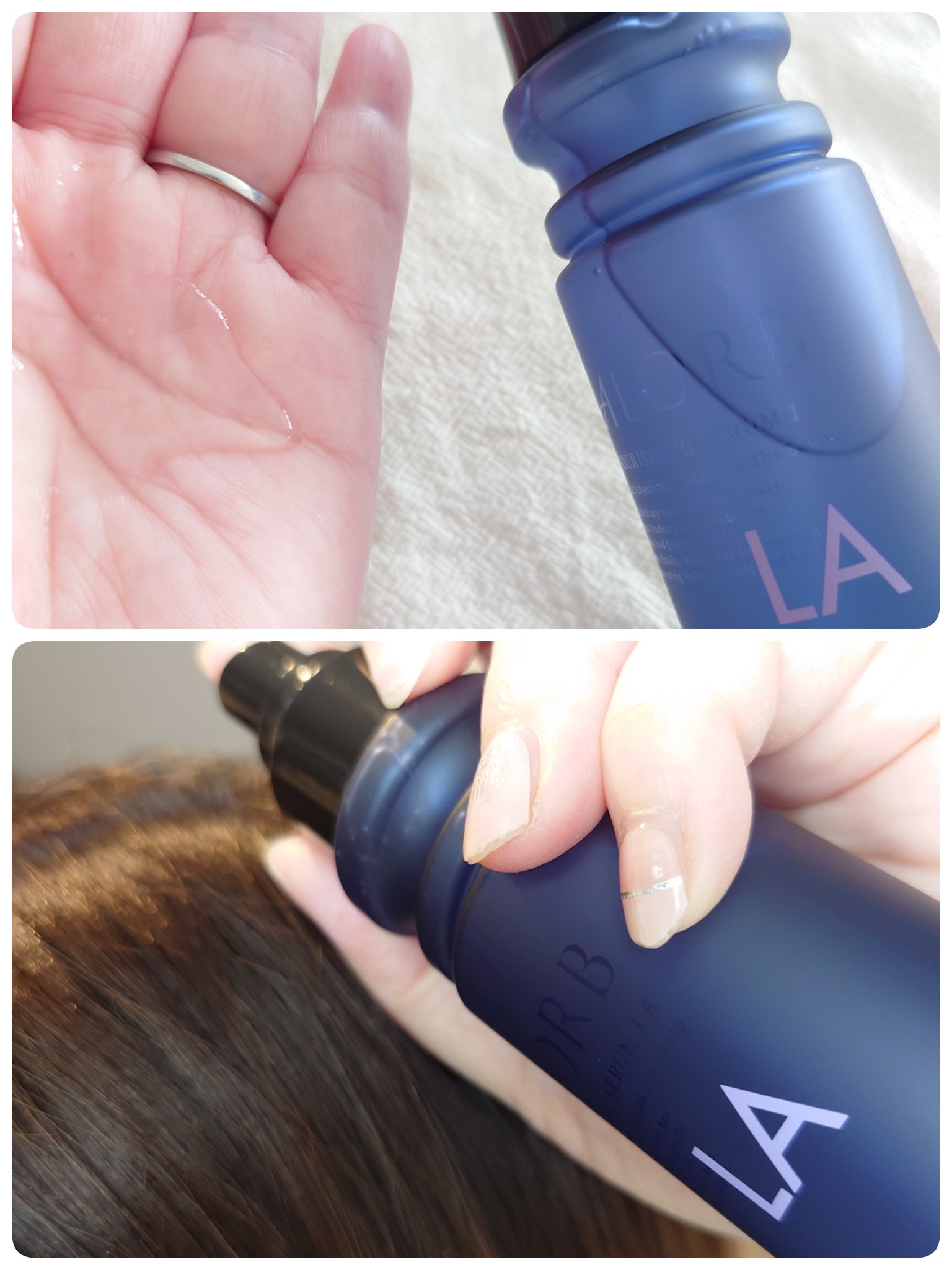 ヘアアイロン・ドライヤーなどの熱から髪を守る『ヒートプロテクション』搭載の洗い流さないトリートメントヘアオイル♪ さらに、髪の繊維補強・ダメージ補修にも! プッシュすると、とろみのあるテクスチャーのヘアオイルです! 毛先から髪全体に馴染ませていくと、ベタつかずにサラッとした使い心地です。 調香師が手掛けたピンクローズ&マンダリンオレンジの香りは、上品で良い香り♡ 毎日のドライヤーやヘアアイロン使用前に使ってます!