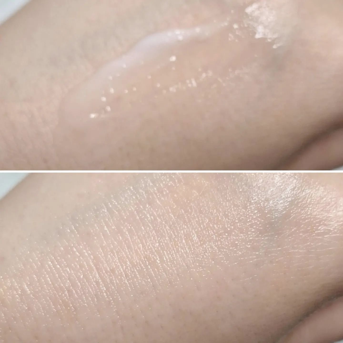 硬めのテクスチャーでチューブを強く押さないと出てきません🤣笑 米粒1粒程度という極小量で、両目の上下まぶたが十分に塗れます❗ 色は少し白っぽいですが気になるほどでもなく、ウォータープルーフ処方ですが夕方になっても乾燥せず、持ちも良かったです👍❤️ 二重幅にアイシャドウが溜まることもなかったです‼ 550円って考えたら破格😳 かなり能力の高いアイシャドウベースだと思います🧡